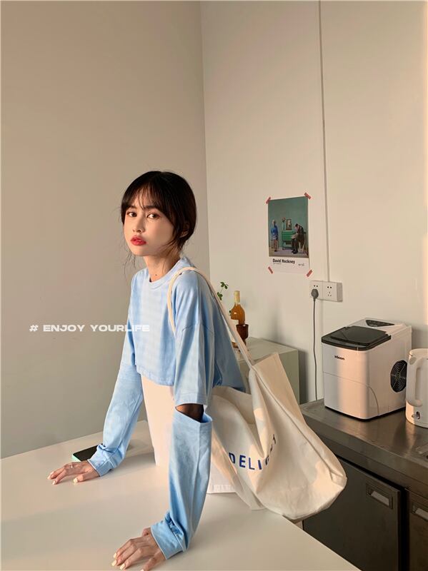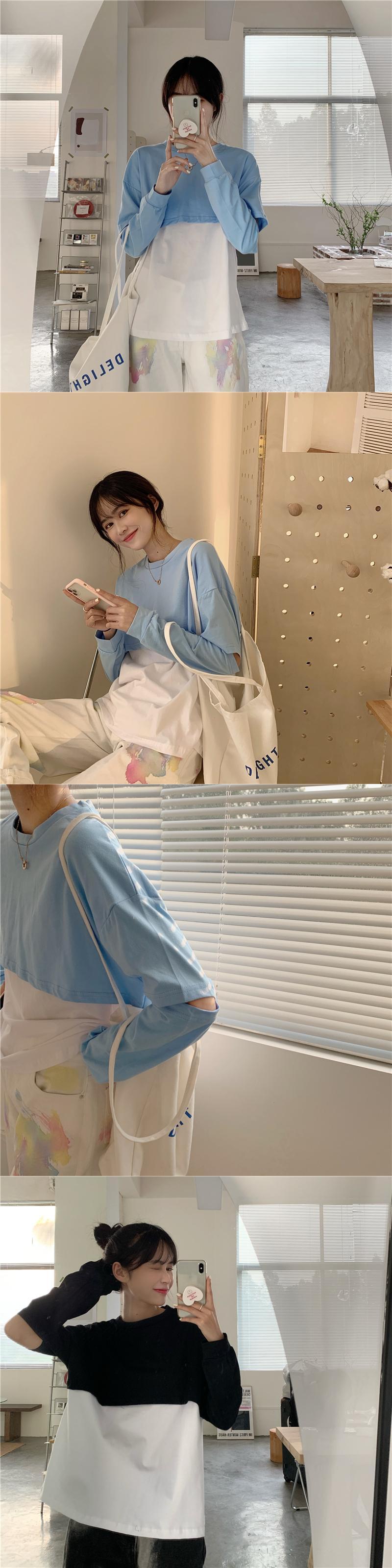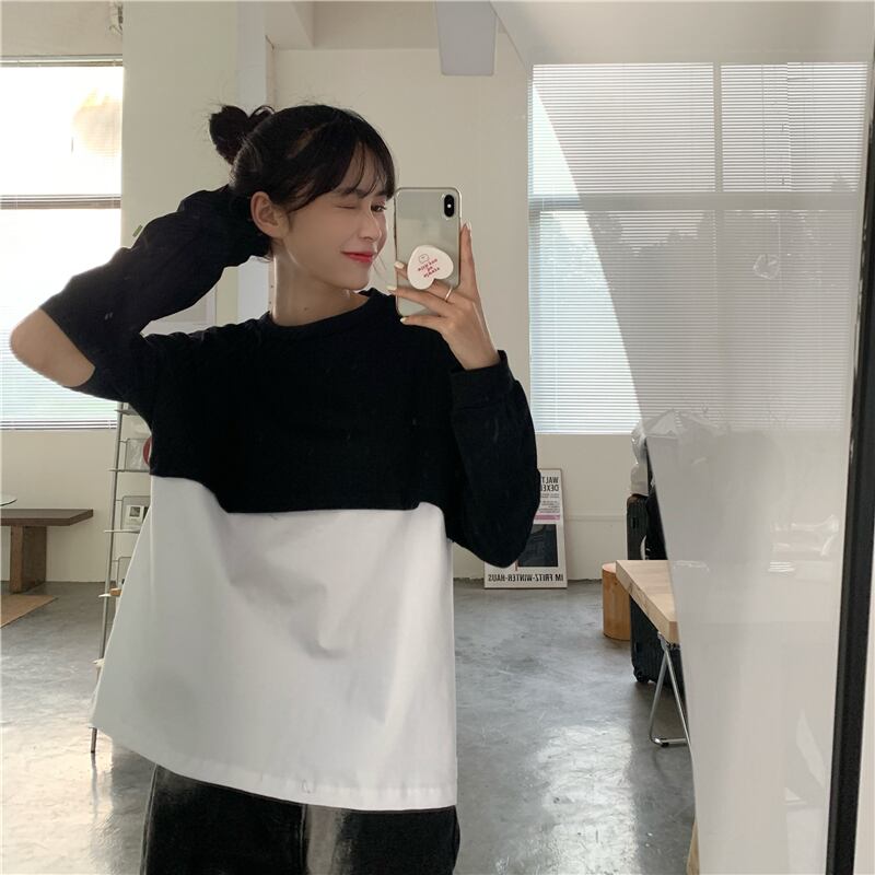 ピュアカラー長袖Tシャツレディース2020初秋のホールステッチコントラストカラーフェイク2ルーズカジュアルトップスの新バージョン クレセントシティ92359240855