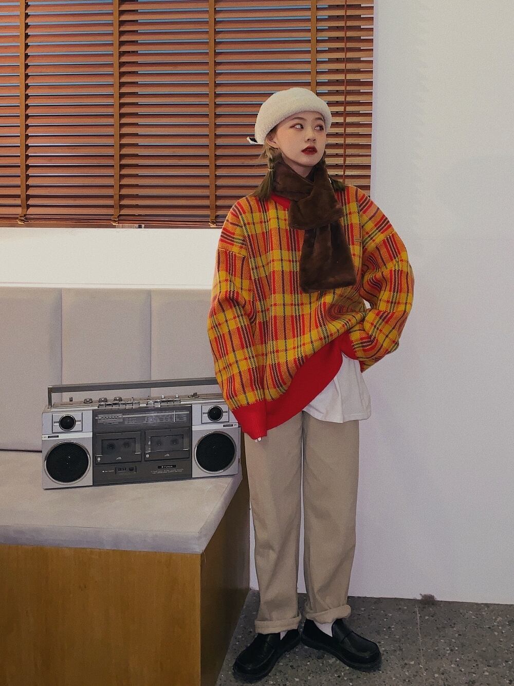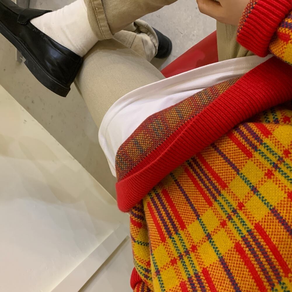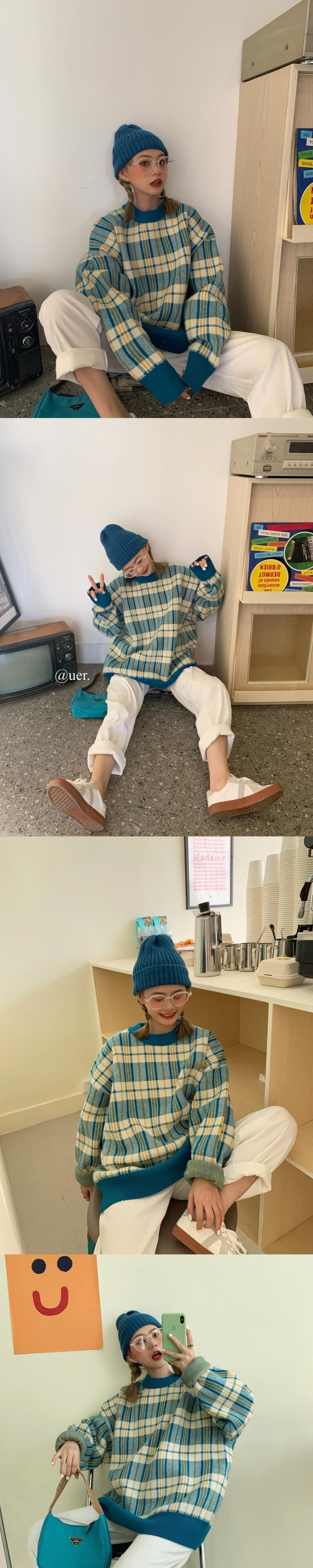 シックな暖かい格子縞のセーターのバージョン2020年初秋新しいルーズミドル丈デザインコントラストセーター クレセントシティ39803587245