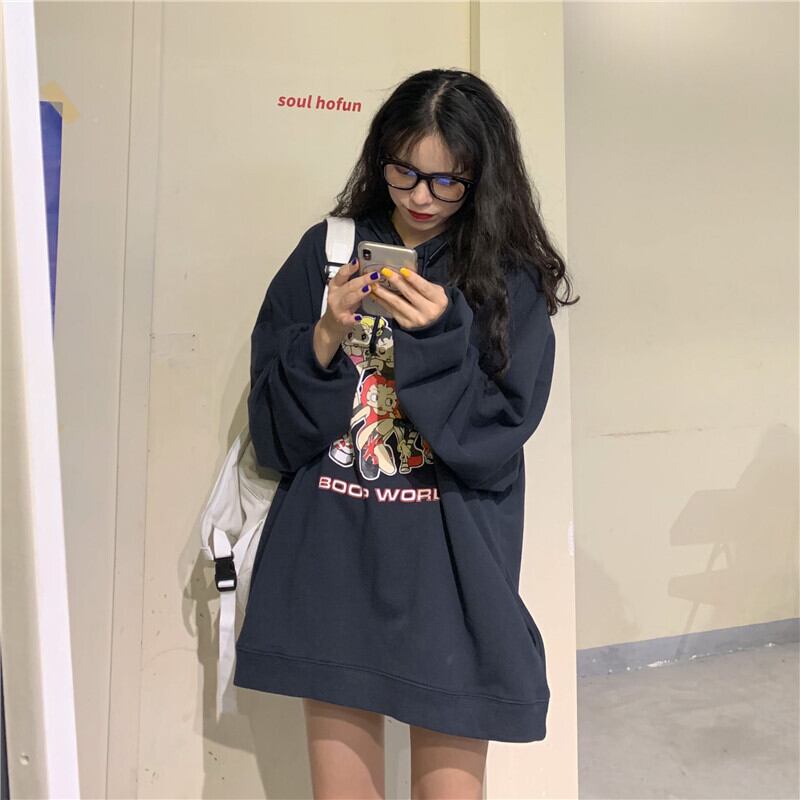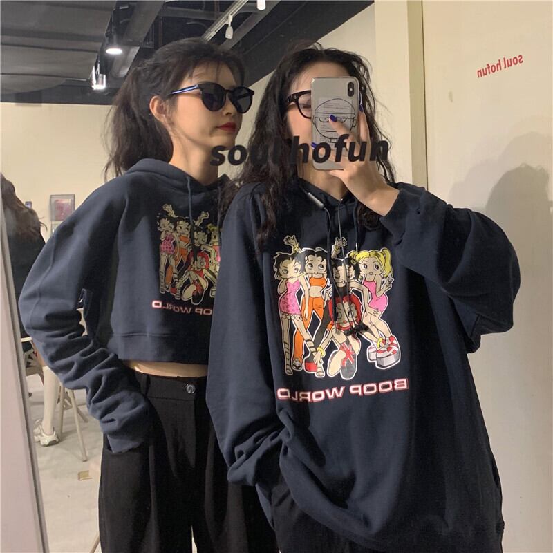 ネットの赤いセーターの女性は、ショートフード付き長袖トップ2020年秋新バージョンルーズ漫画ジャケットをタイドします クレセントシティ76771827828