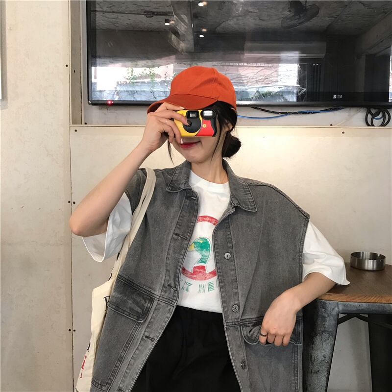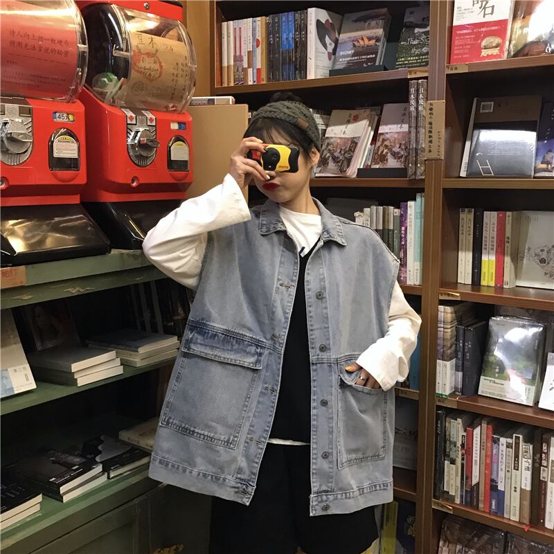 ルーズデニムベスト女子学生ノースリーブジャケットファッションオールマッチシンナー原鳳凰ビッグポケットスタイルアウター クレセントシティ87577485634