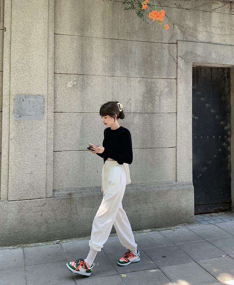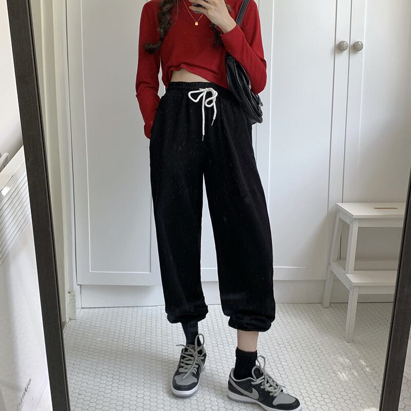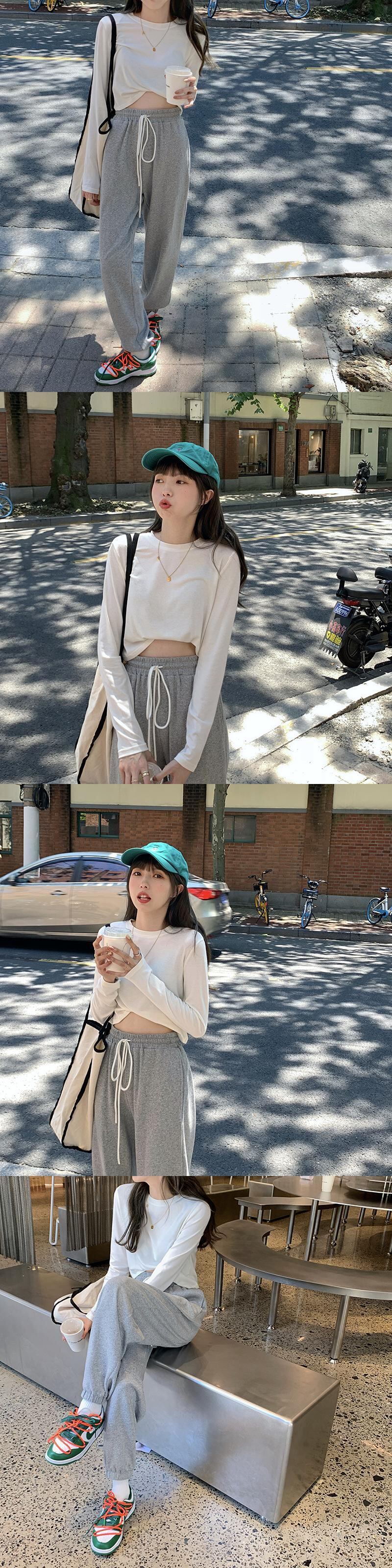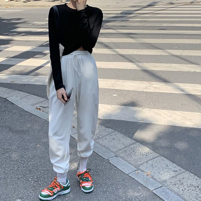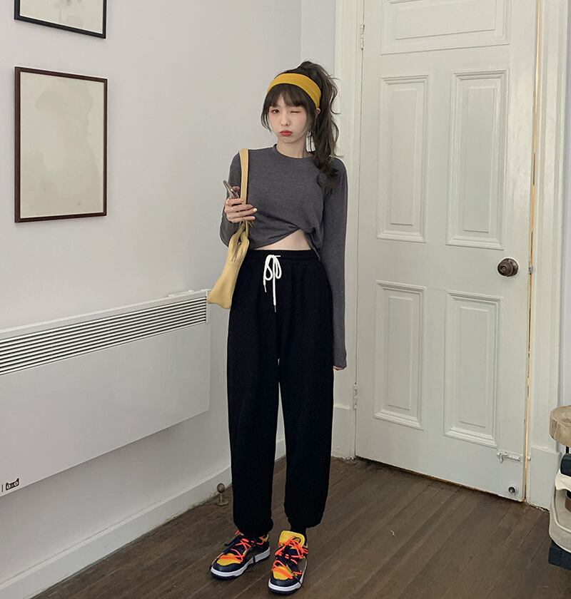 スポーツスーツレディース2020年初秋新作スタイルショートルーズ長袖Tシャツ+伸縮性ウエストコルセットパンツトレンド クレセントシティ87421312402