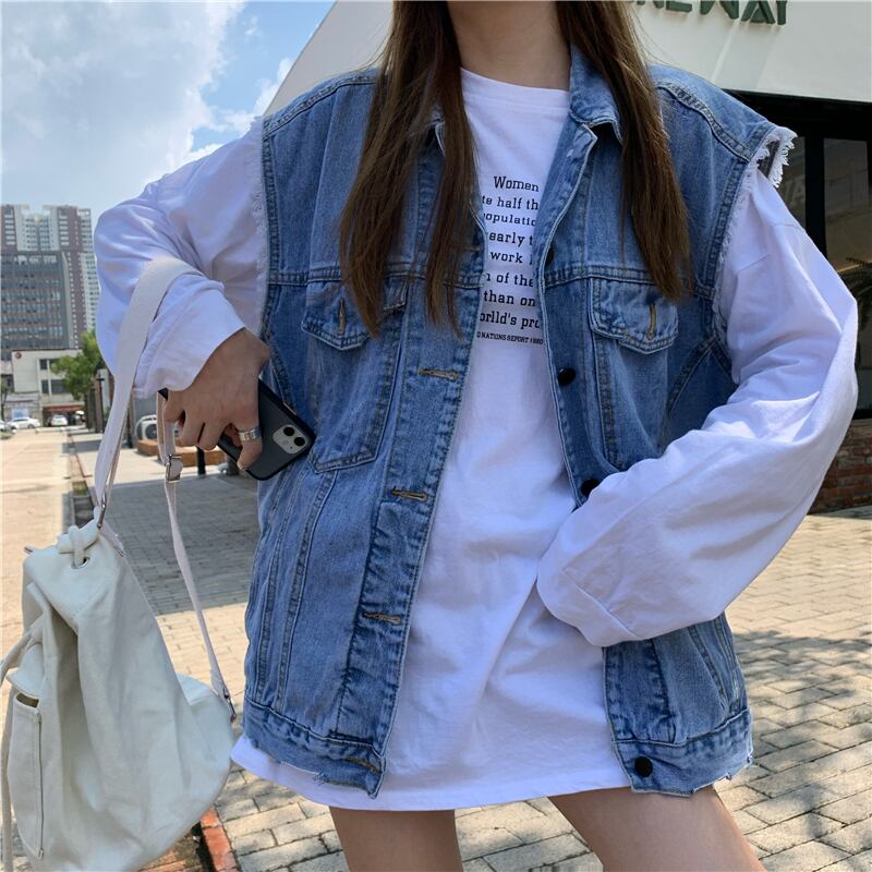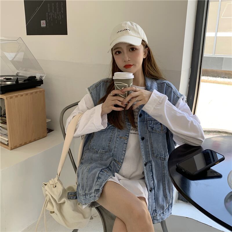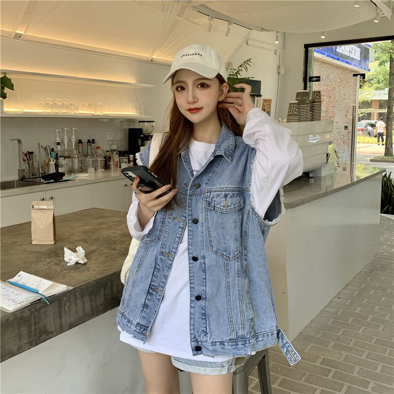 スタイルルーズBFワイルドノースリーブデニムフライドストリートジャケット女子学生ジャケットベストベスト秋新作スタイル クレセントシティ32651485321