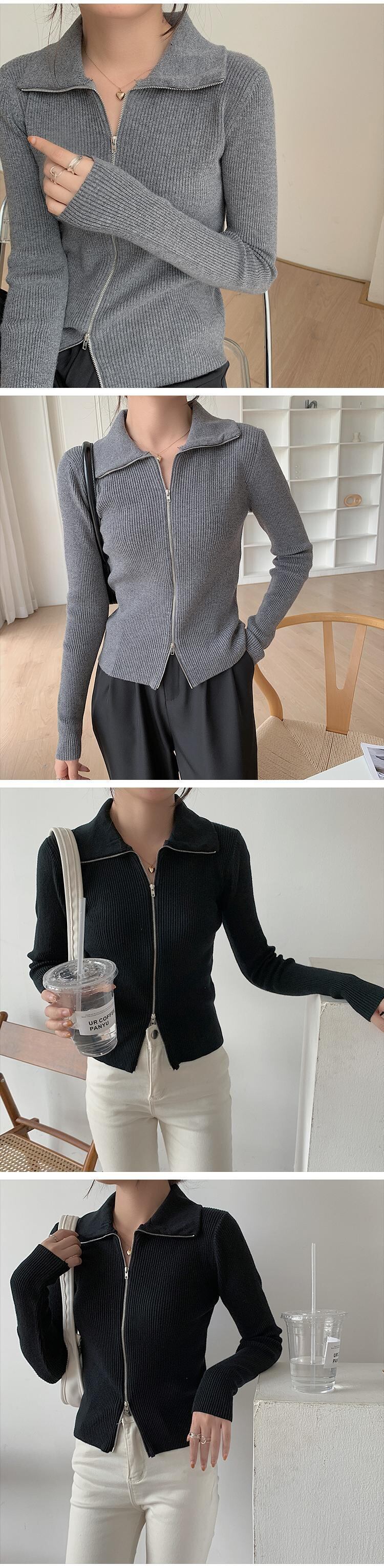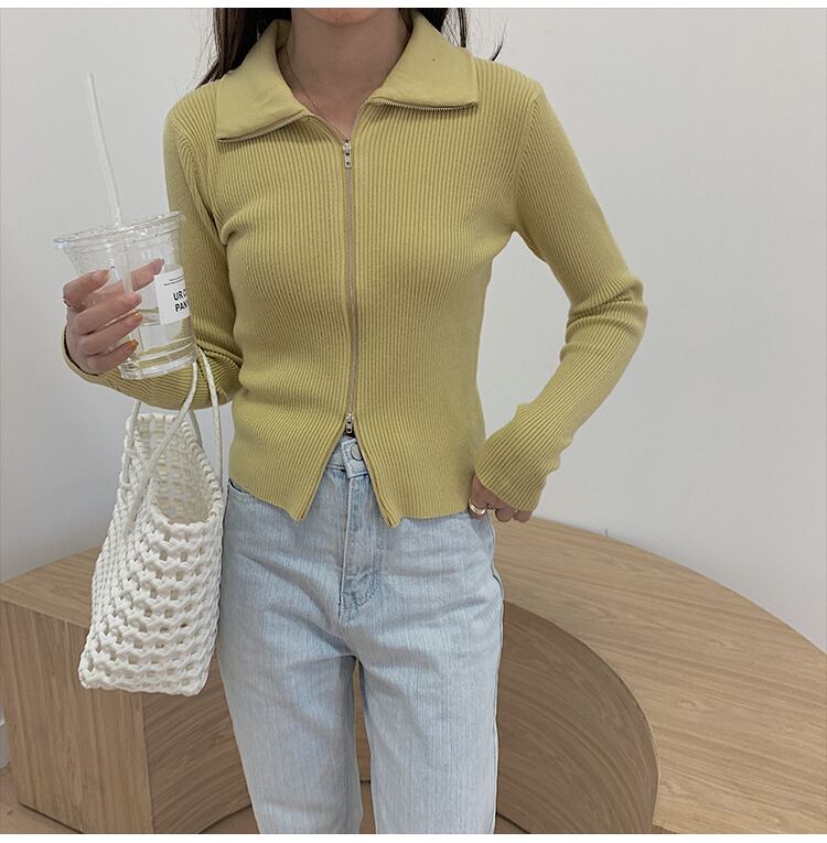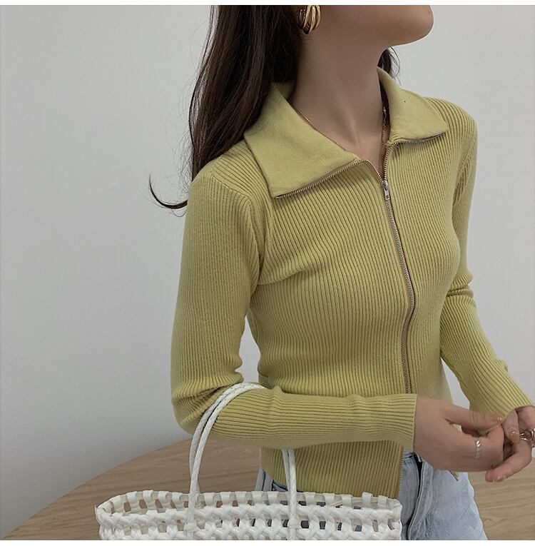 ニットカーディガンレディース2020年秋スリム&シンアウタートップ長袖ラペルジッパーセータースモールジャケット クレセントシティ2756155517