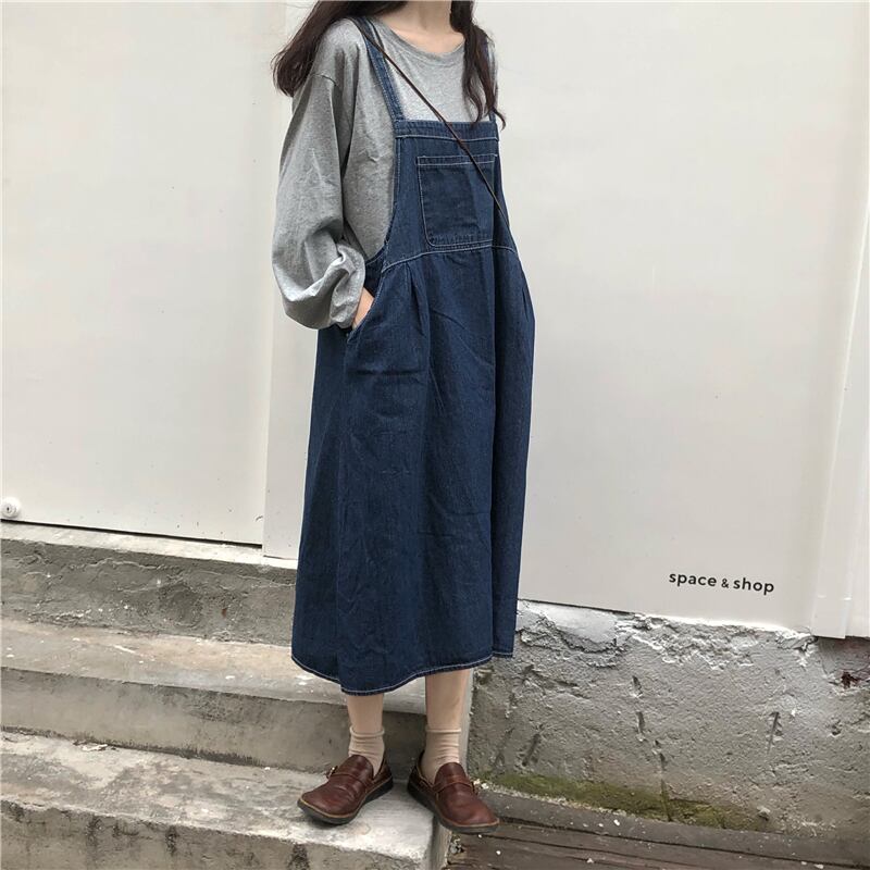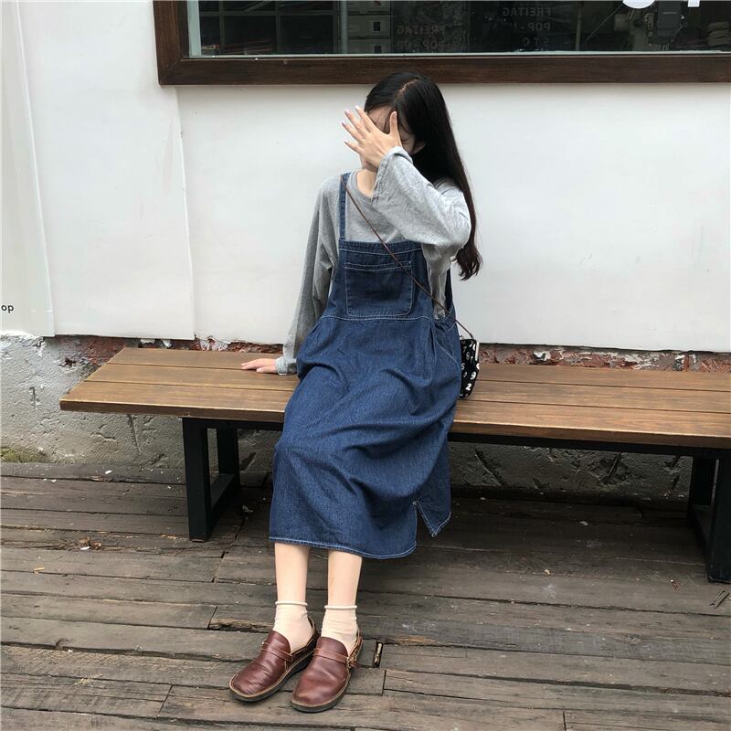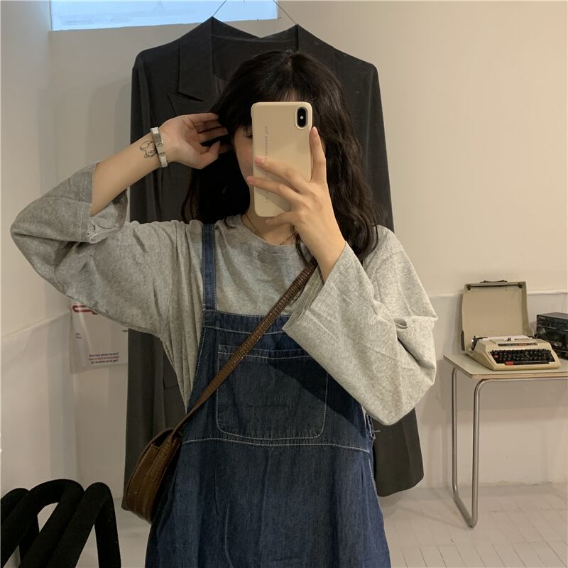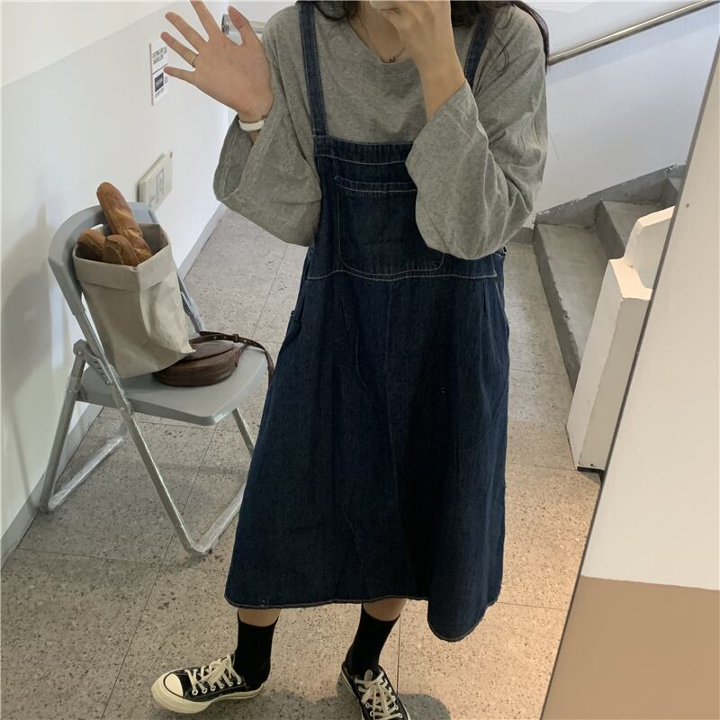 2020年初秋新しいファッションスーツの女性は長袖Tシャツトップ+年齢を減らすデニムストラップドレスを緩めます クレセントシティ35619860296