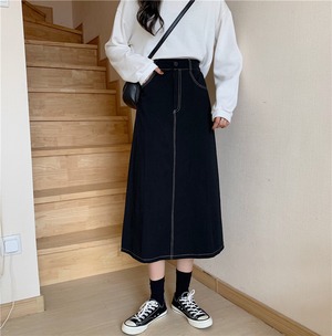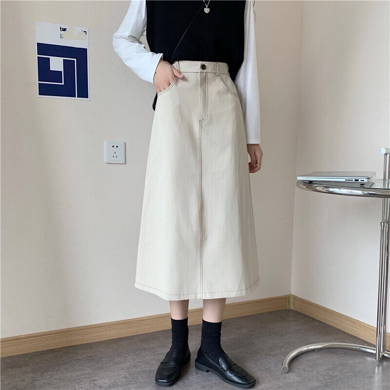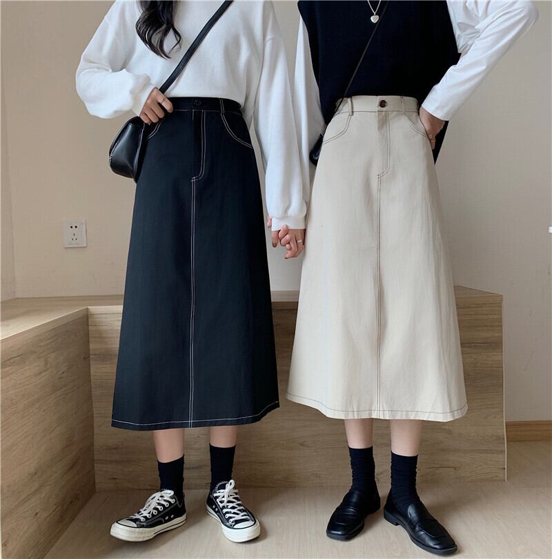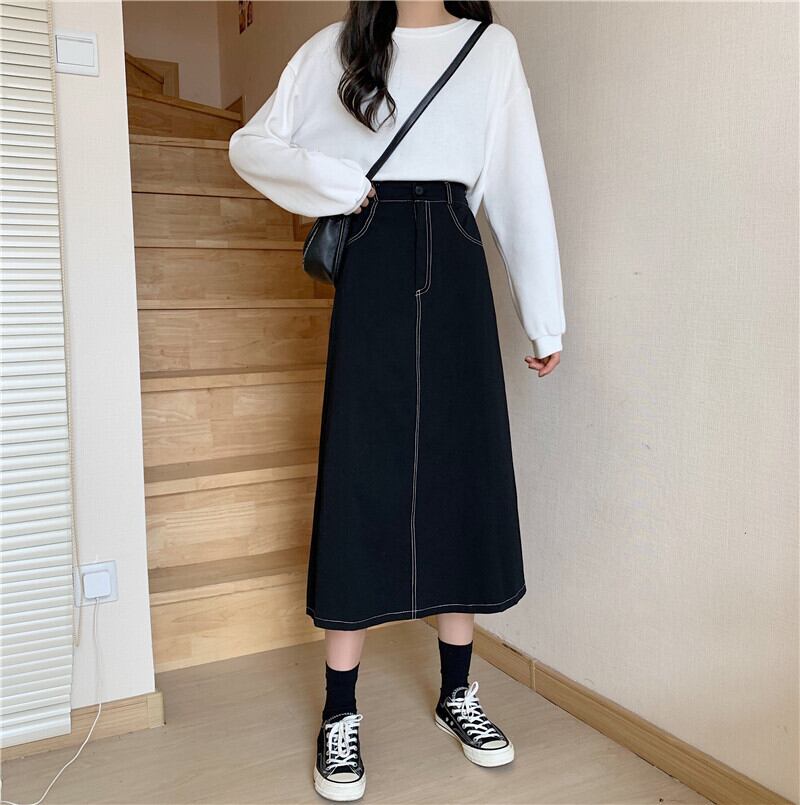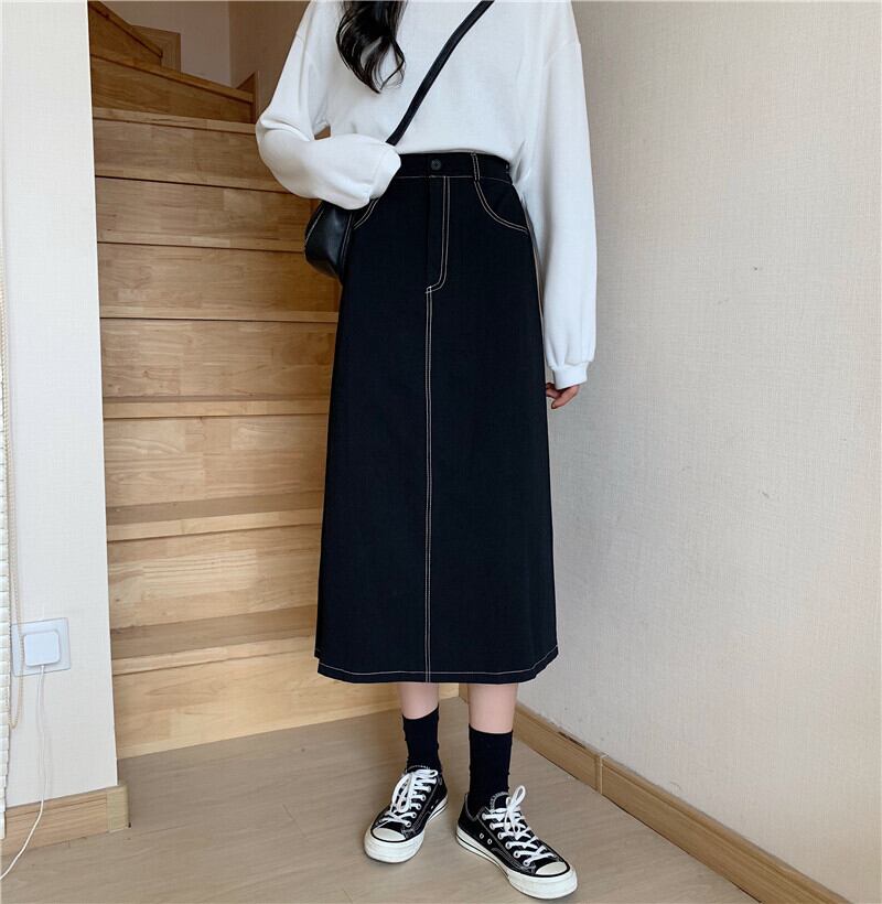 デニムスカートレディース2020新バージョンハイウエストスリミング秋ミドル丈スカート学生気質Aラインスカートイン クレセントシティ58123340233