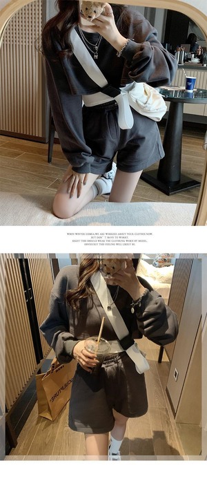 ファッションスーツレディース2020年秋新作スタイルスタックウェアフライドストリートルーズショートセーター+ワイドレッグショーツ クレセントシティ11548299436