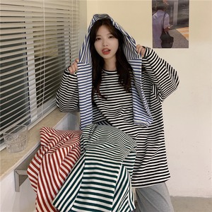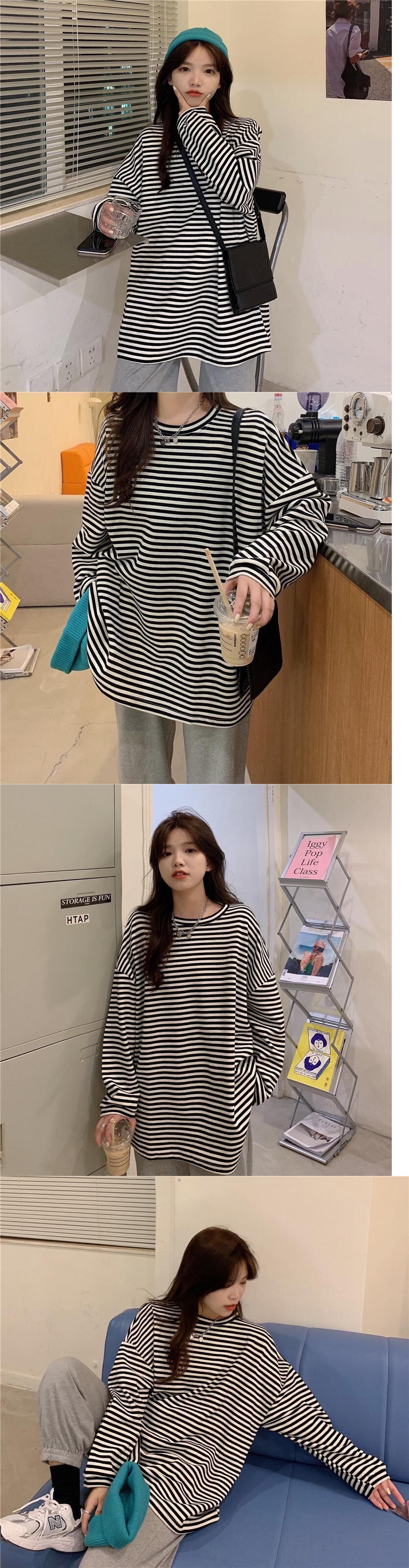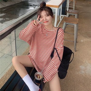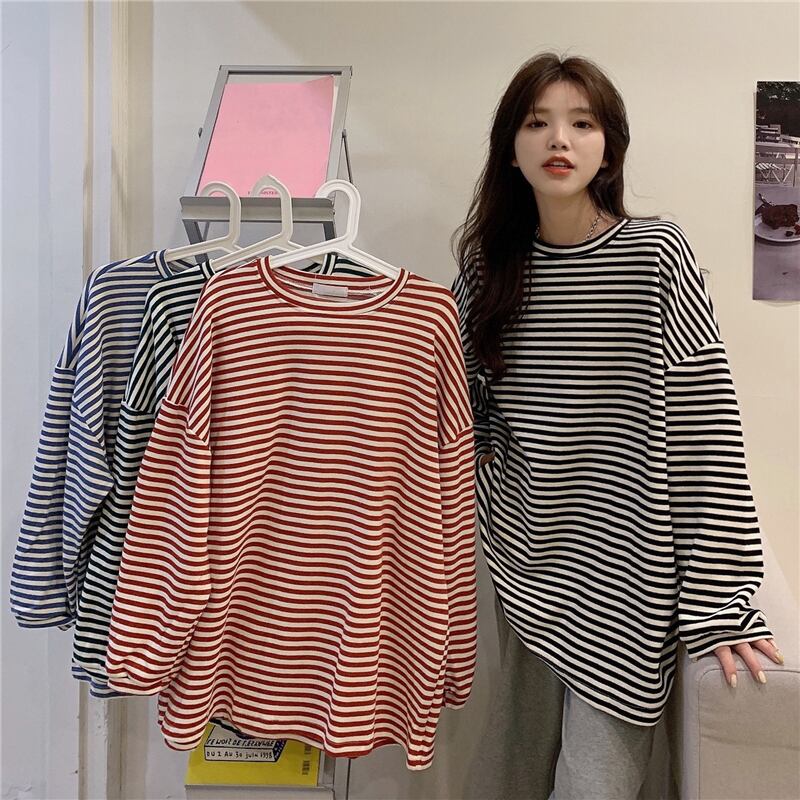 ルーズストライプ長袖セーターレディース2020年初秋怠惰なスタイルの学生ミドル丈スリムトップトレンドの新バージョン クレセントシティ25071371954