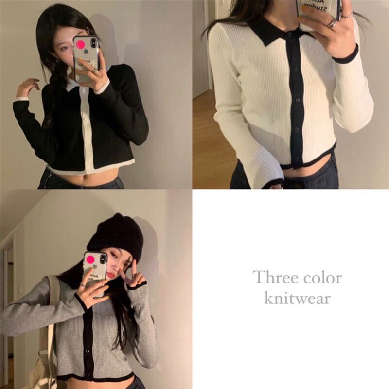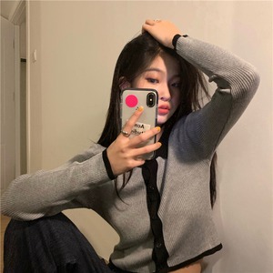 カラーセーター カーディガン薄手コート オータムクロップドトップス ロング 秋物 クレセントシティ73926096344