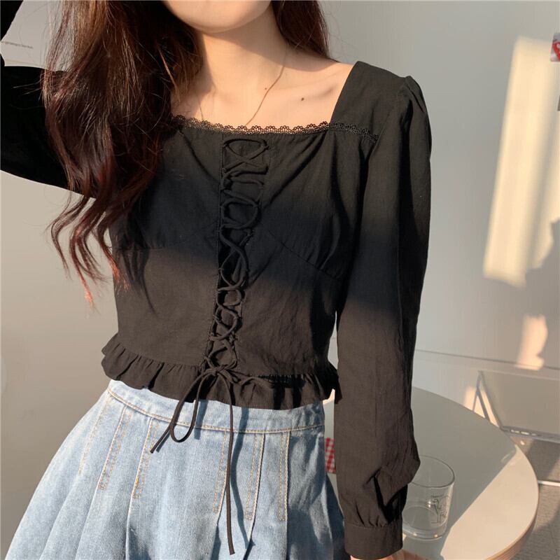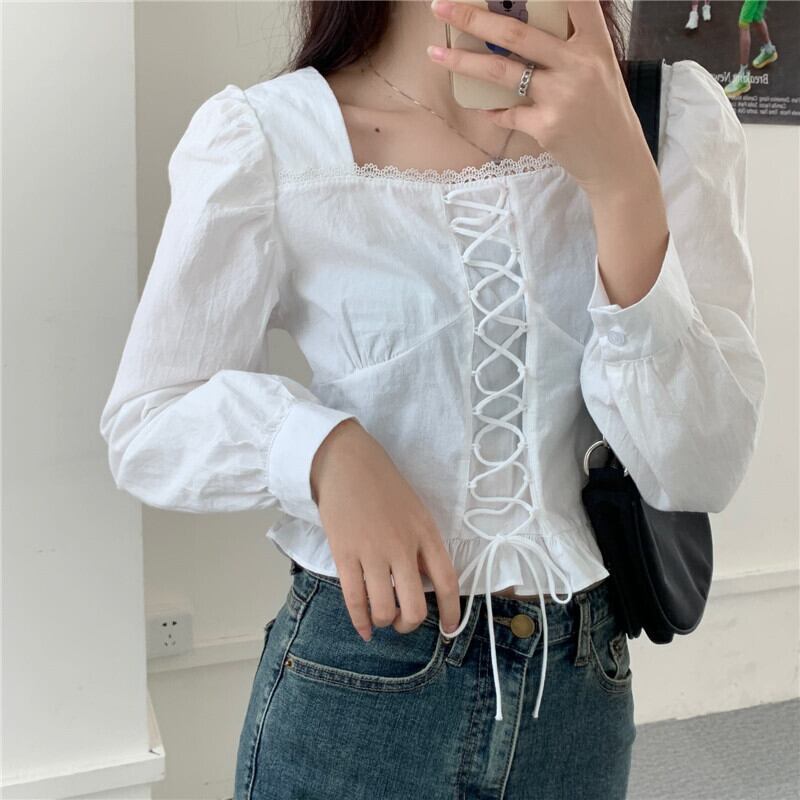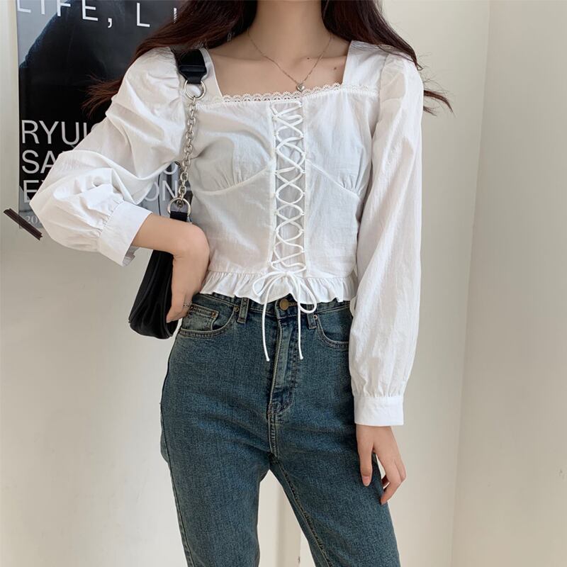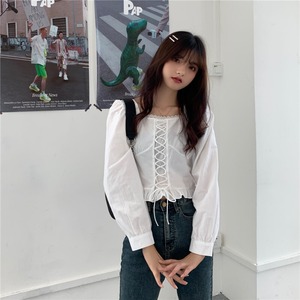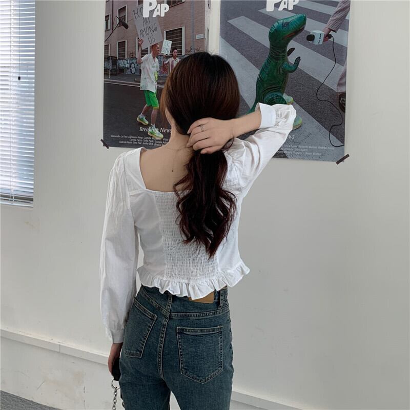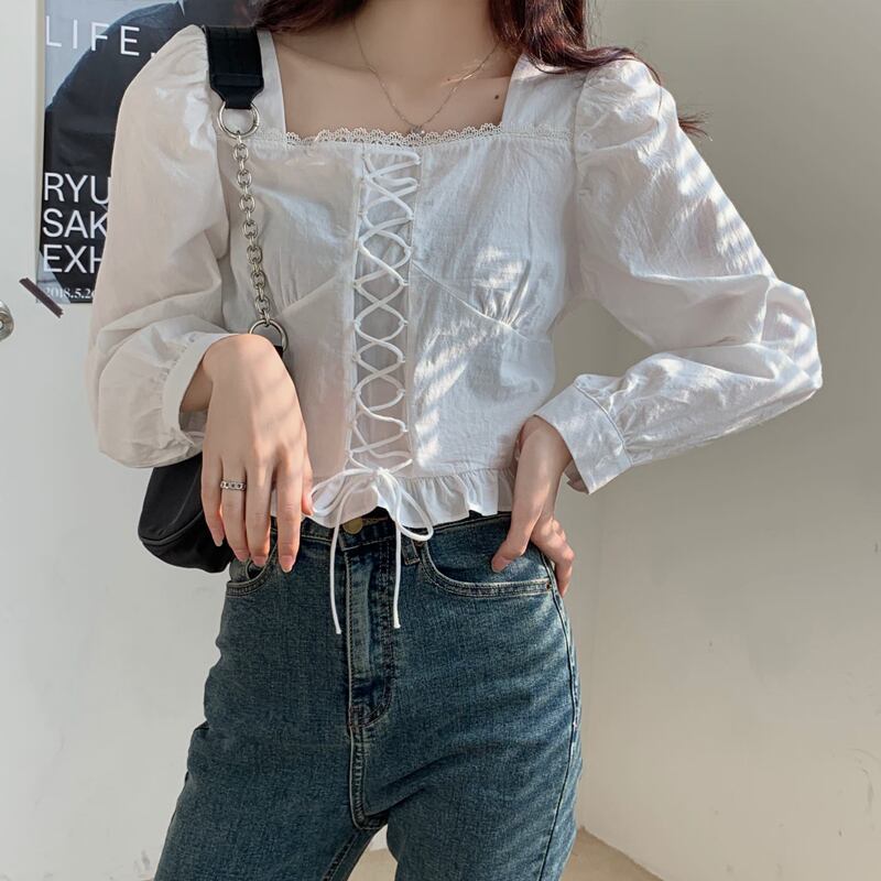 ホワイトシャツ女性デザインセンスニッチ2020年初秋新バージョン丁寧にマシンスクエアネックストラップショートシャツトレンド クレセントシティ11076172300