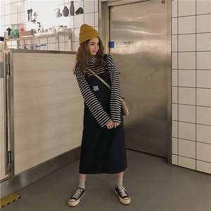 デニムサスペンダースカート女性2020年秋新バージョン年齢削減ルーズレトロミドル丈サスペンダードレス学生 クレセントシティ86943205072