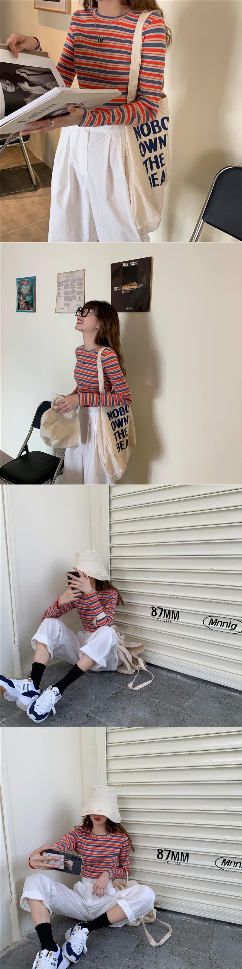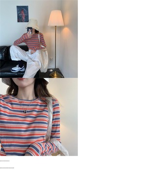 対照的なカラーストライプボトミングシャツレディースオータムウェア2020新バージョンのスリムスリミングアウターウェア長袖Tシャツトップ クレセントシティ25891003629