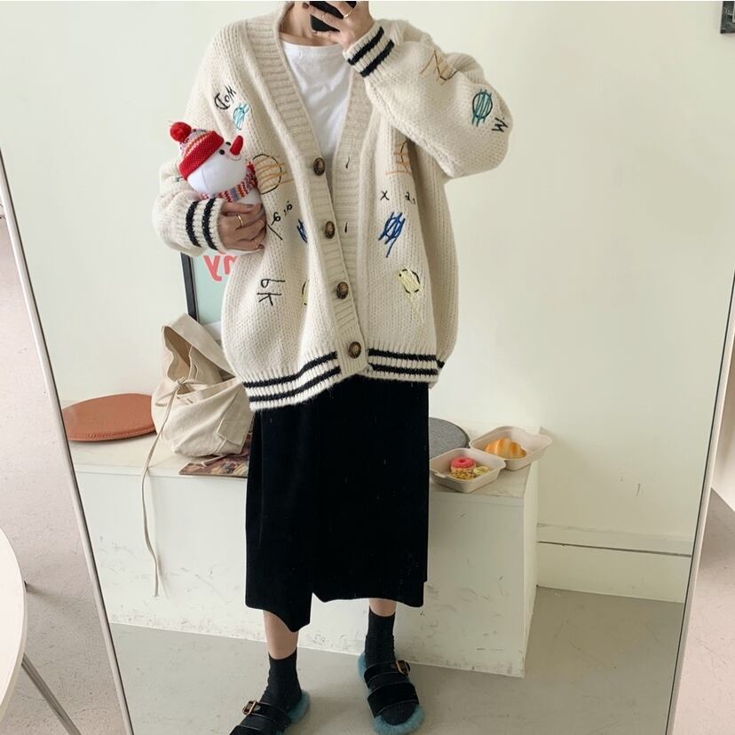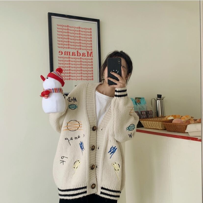 カジュアル刺繍セーター女性2020年秋新入生ルーズで薄いカジュアルミドル丈カーディガンジャケット クレセントシティ36893870312