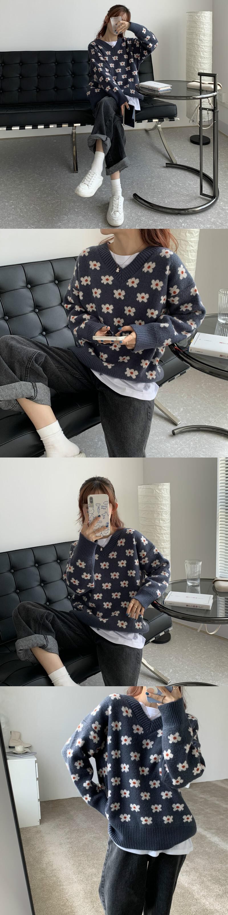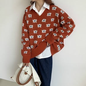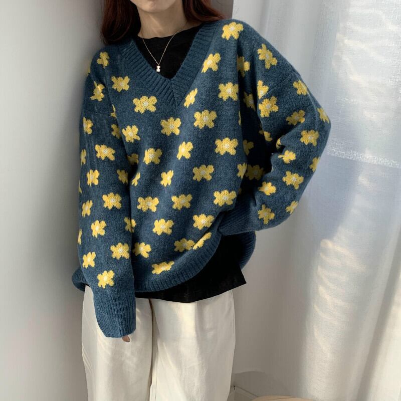 怠惰なスタイルのジャカードプルオーバーセーターレディースアウターウェア2020年秋冬新バージョンルーズミドル丈Vネックセーター クレセントシティ70093908086