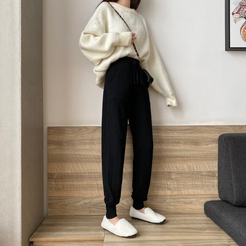 2020年の新しいレディースカジュアルパンツ、スモールニットスウェットパンツ、秋冬のハイウエストルーズストレートレギンス クレセントシティ3683903996