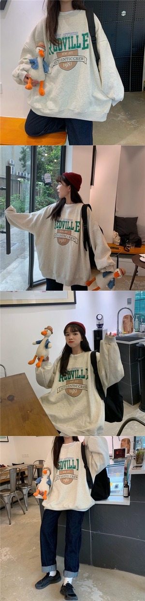 フリースセーターレディース2020年初秋新作レタープリント学生ルーズカジュアルラウンドネックプルオーバートップトレンド クレセントシティ19079069192