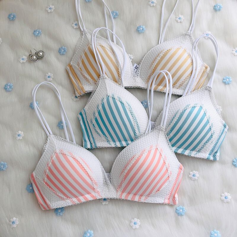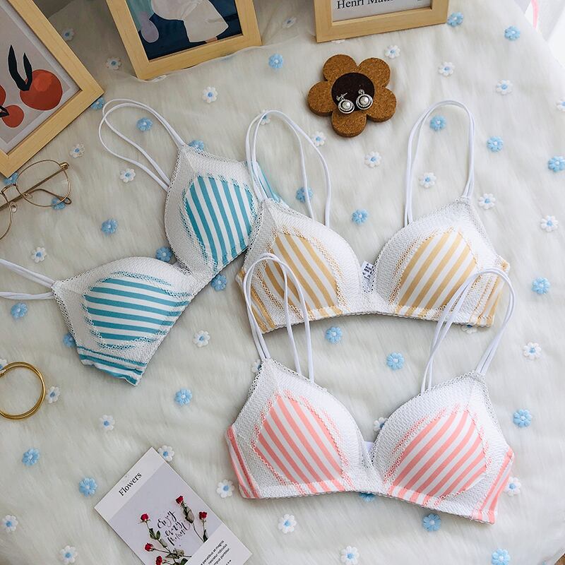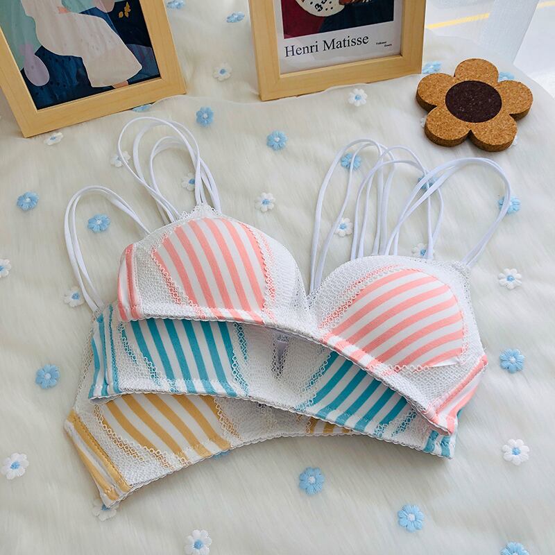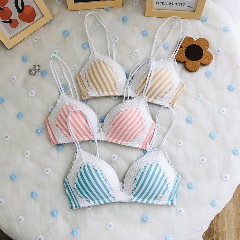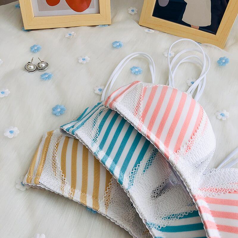 クレセントシティ2020新しいレース下着女性のスチールリングなし小さなブラストライプチューブトップトライアングルカップブラ クレセントシティ64142858631