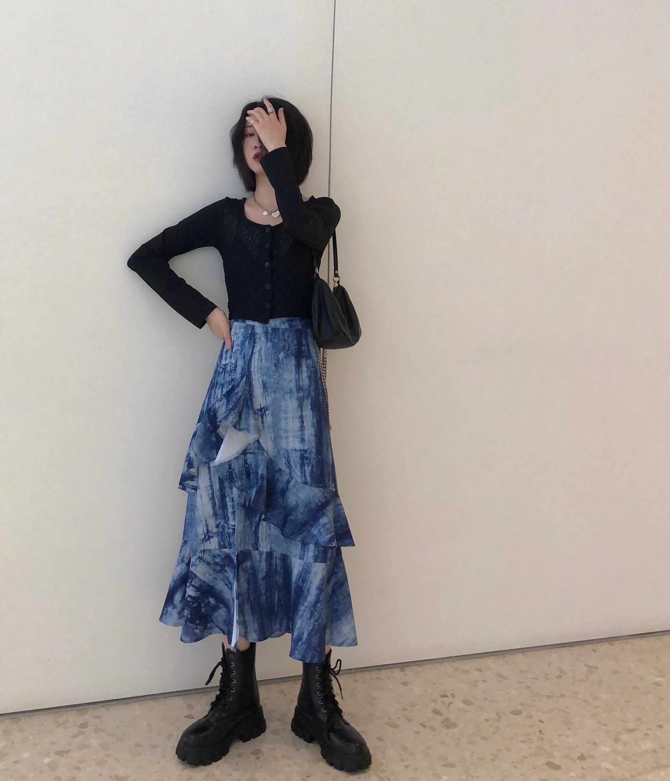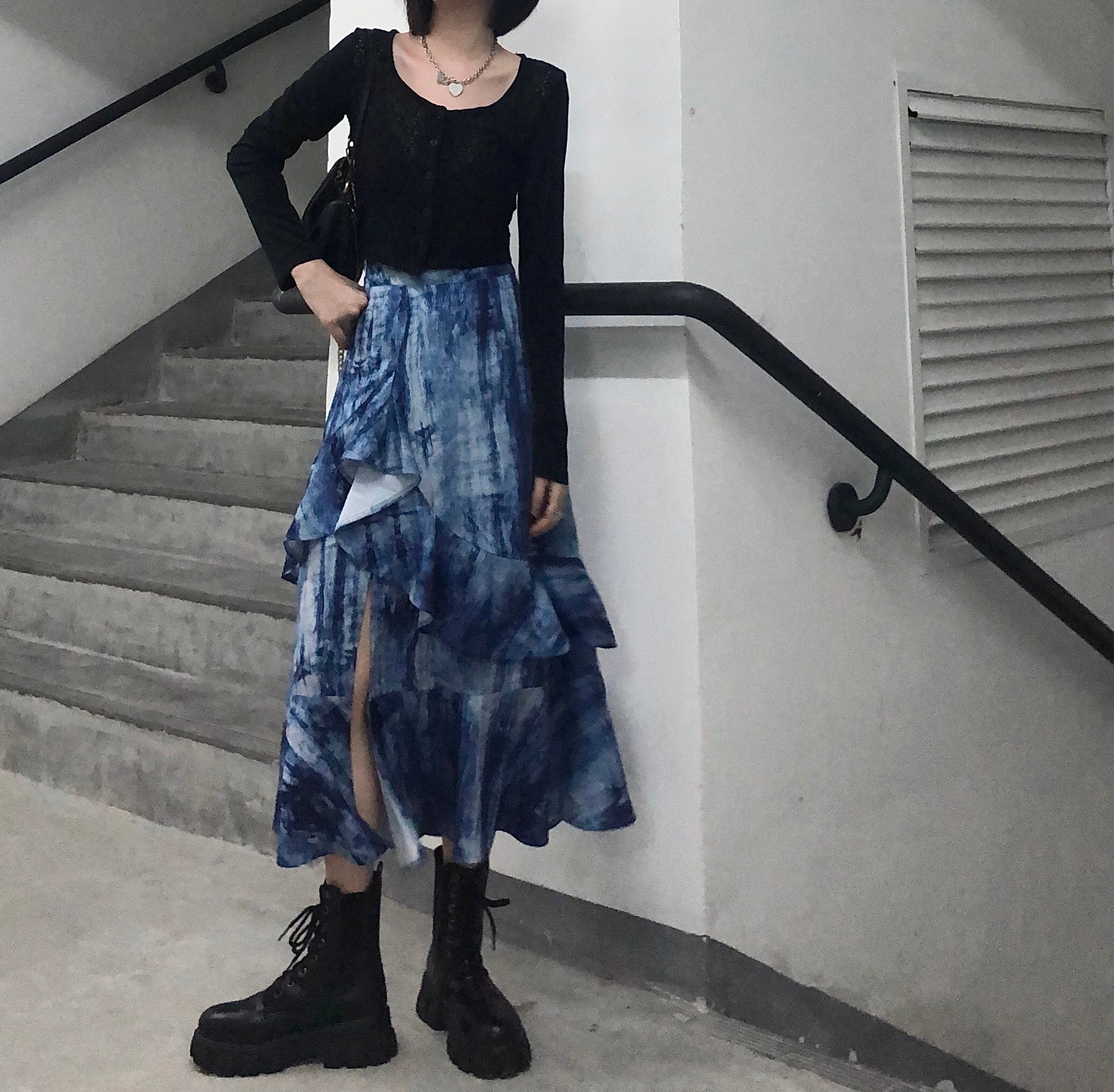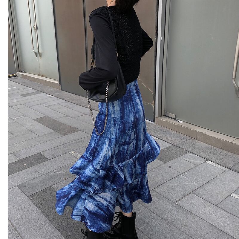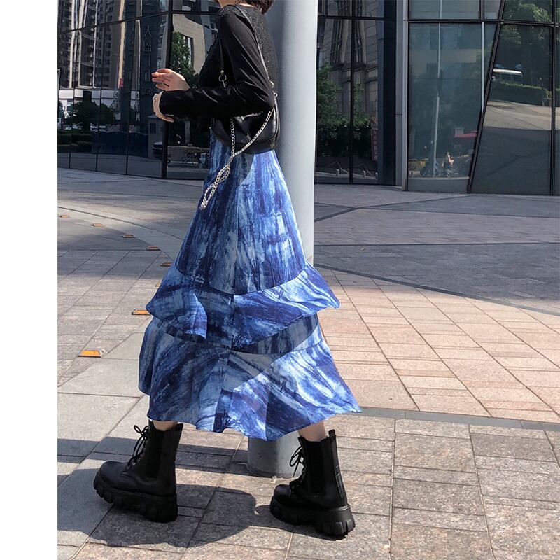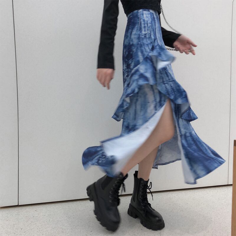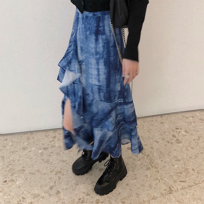 2020年秋新バージョンのinsスーパーファイア絞り染めイレギュラースカートレディース薄手ミドル丈フリルスカート クレセントシティ71955906828