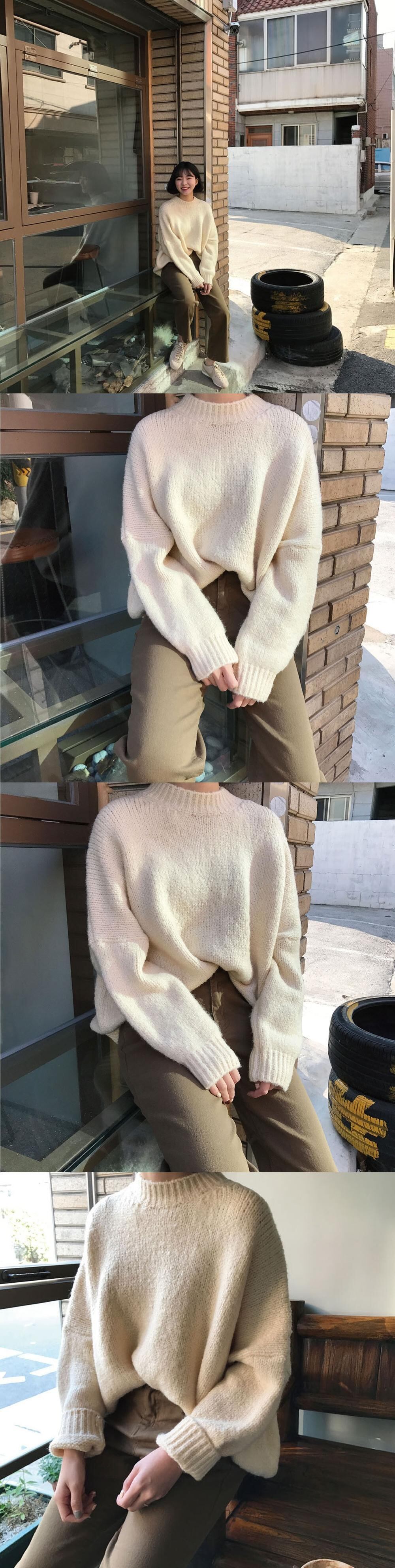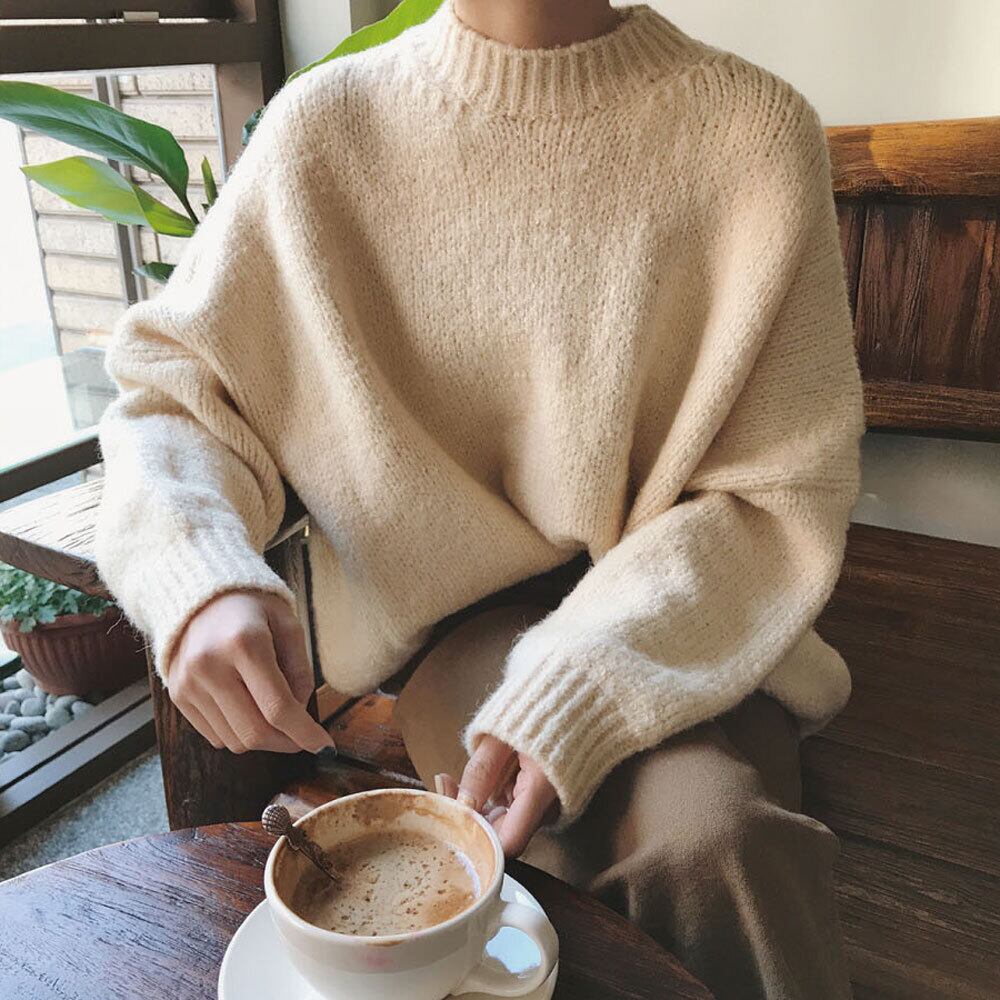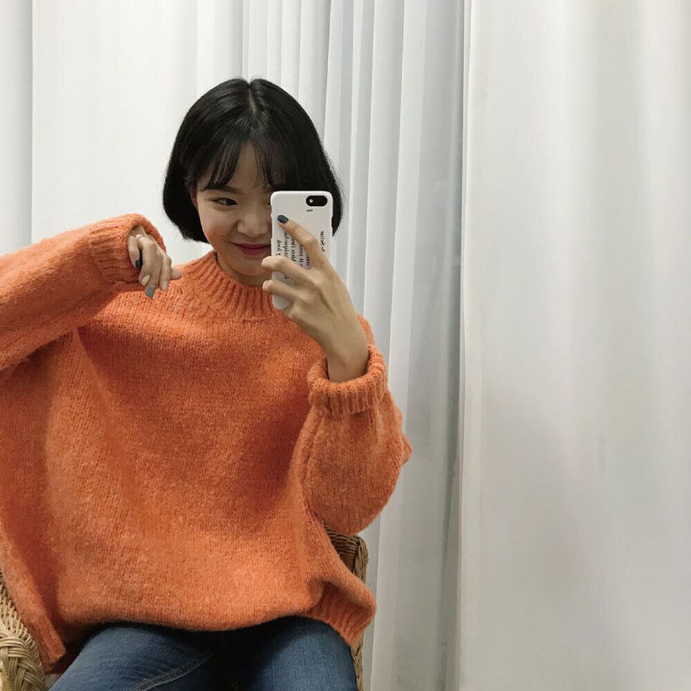 ピュアカラースノーフレークウサギベルベットセーター女性の2020年初秋新しいハーフハイカラールーズミドル丈カジュアルセーター クレセントシティ24450363039