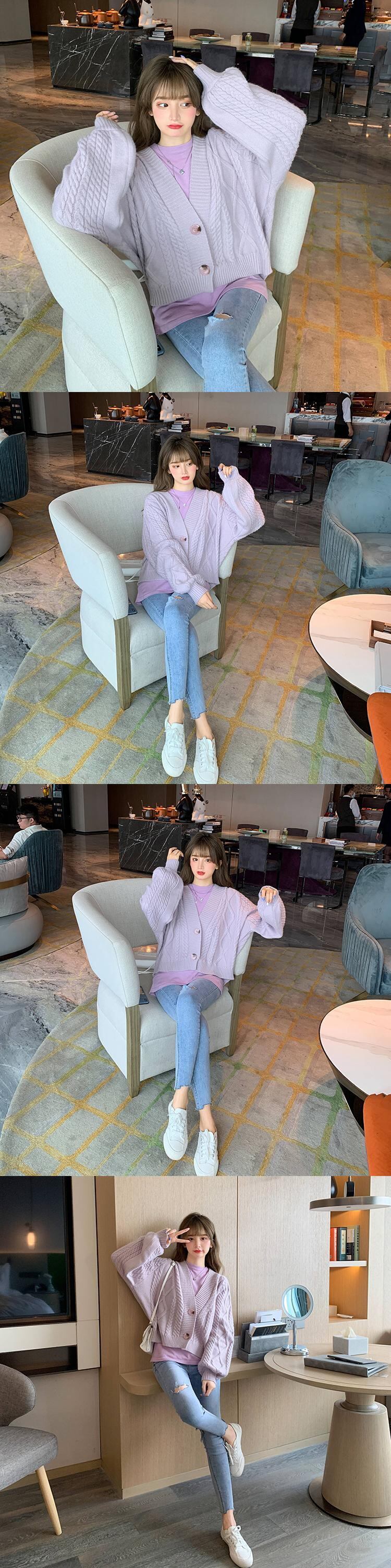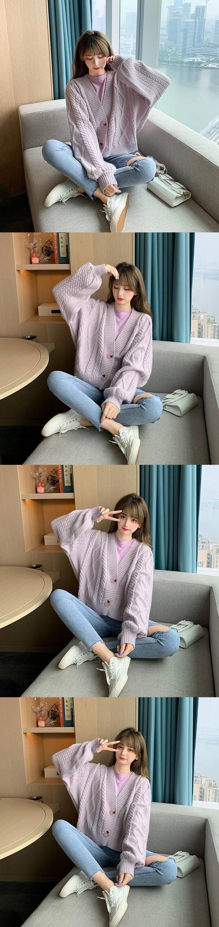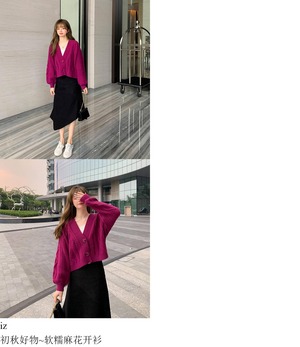 2020年秋冬新バージョンのVネックニットカーディガントップレディースネットレッドルーズツイストセータージャケットインタイド クレセントシティ88232329554