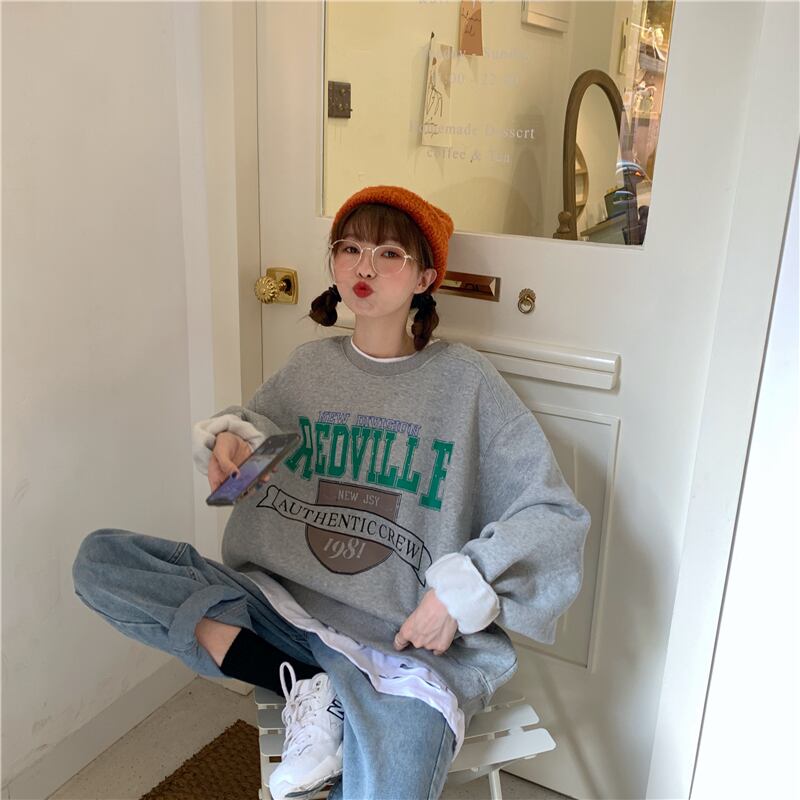 偽のツーピースカジュアルプリントセーターのバージョン2020年秋新しいスプライシングホールデザインルーズトップトレンド クレセントシティ38347214019