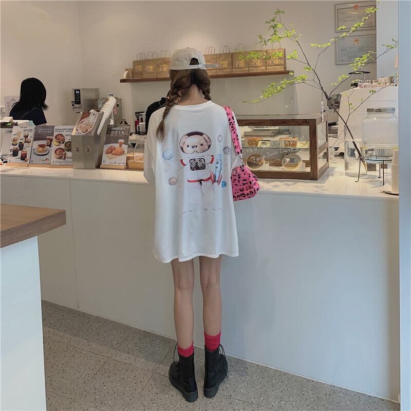 白い長袖Tシャツ女性の2020年初秋新しいクマ宇宙飛行士が描いたカラス年齢減少ルーズトップのバージョン クレセントシティ8666025388