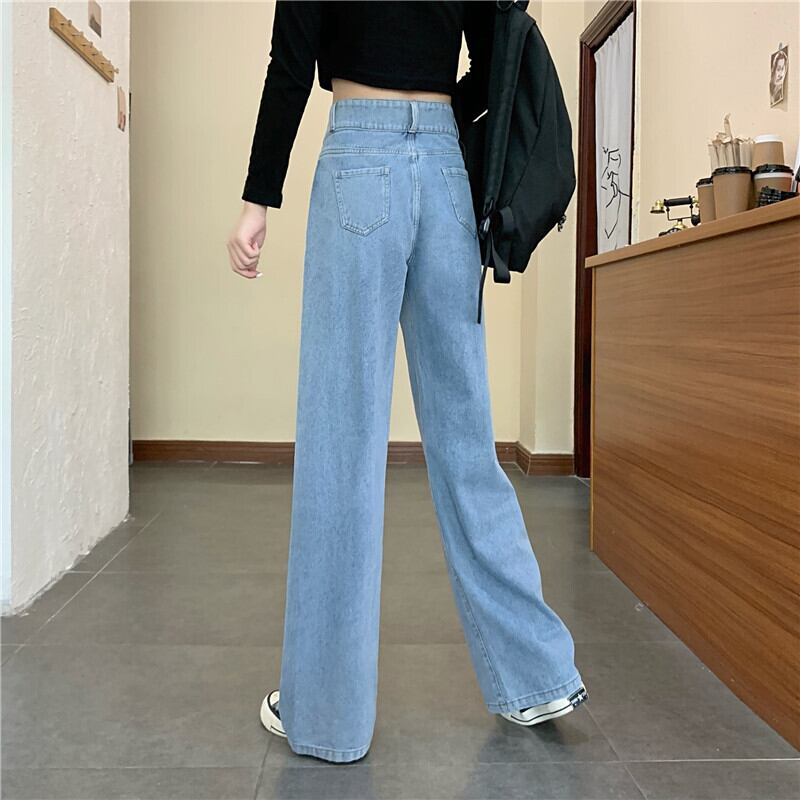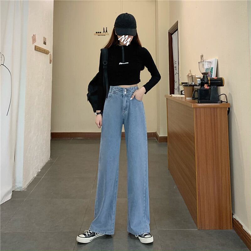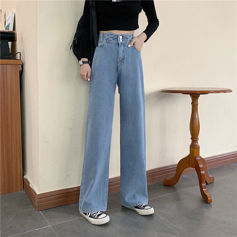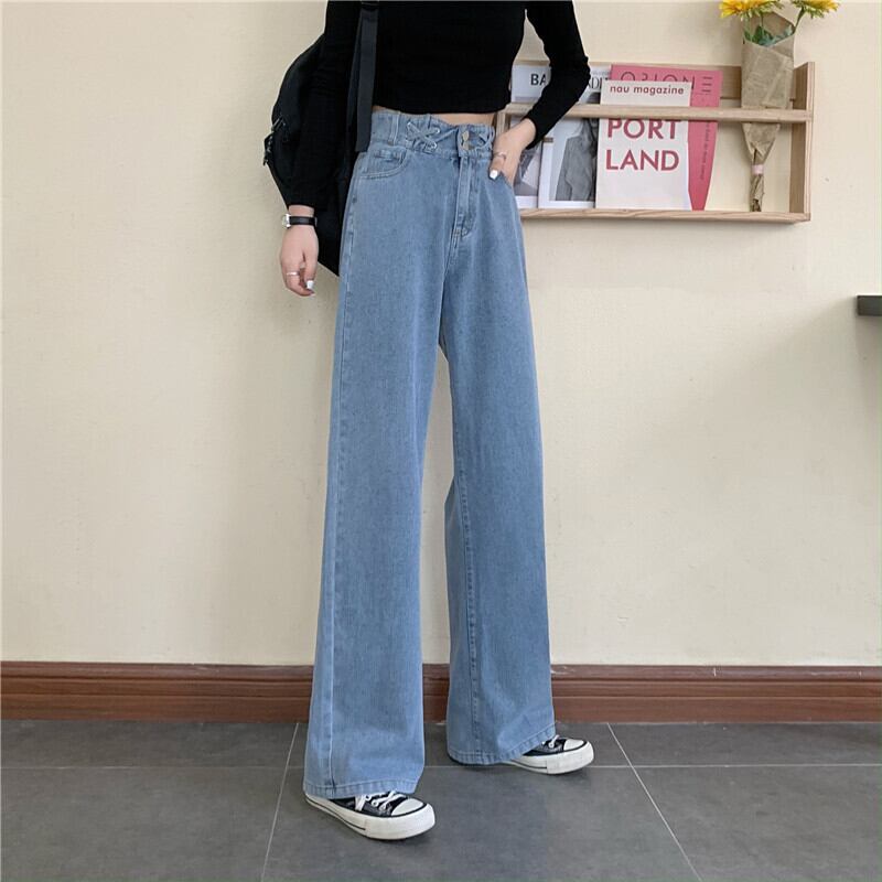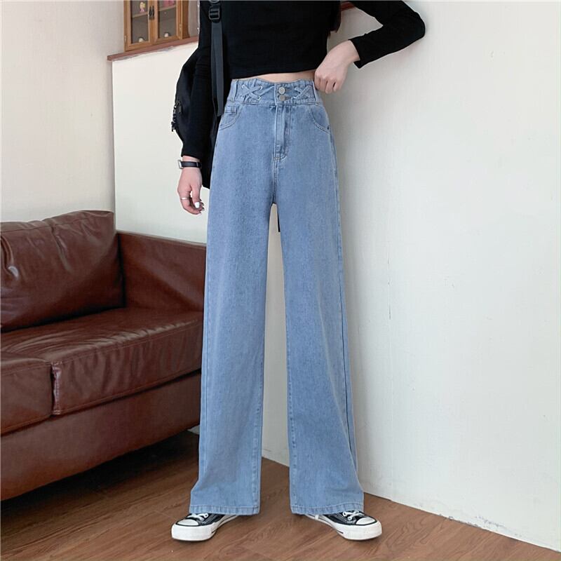 2020年秋新バージョンのハイウエストジーンズレディースライトカラールーズストレートワイドレッグパンツは細くて背が高い クレセントシティ64812507823
