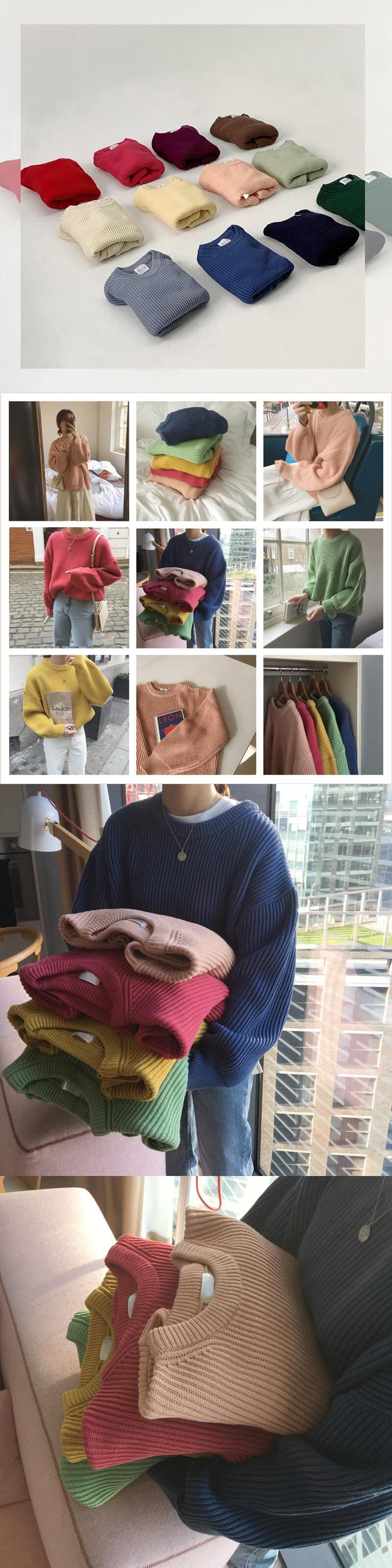 厚手のニットセーター女性の2020年初秋新バージョンの純粋な色の怠惰な風ルーズで薄い学生の太い針プルオーバーセーター クレセントシティ59273906548