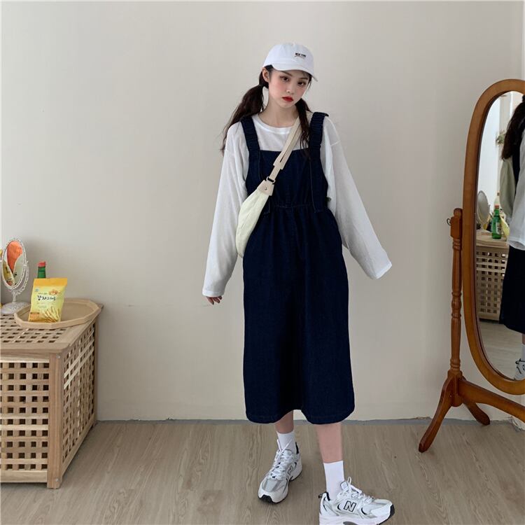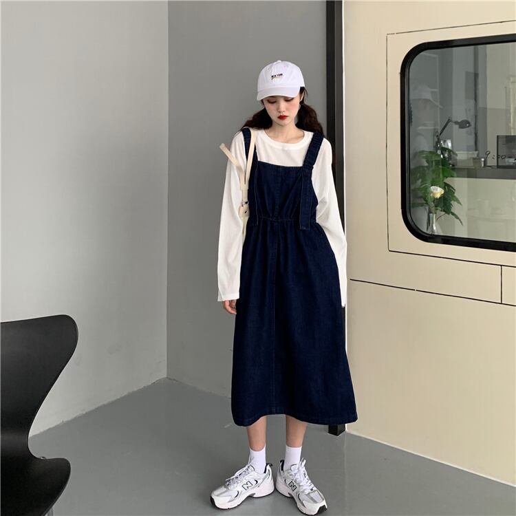 2020年初秋女性のドレス新しいスタイルのハイウエストルーズ年齢を減らすストラップドレス+白い長袖Tシャツのトレンド クレセントシティ56323080407
