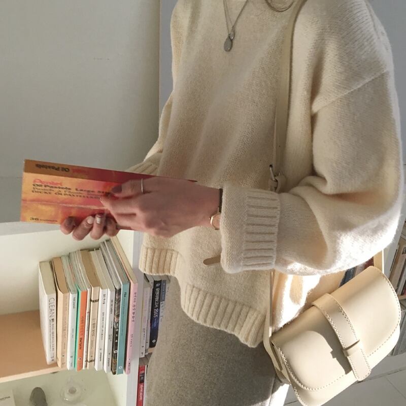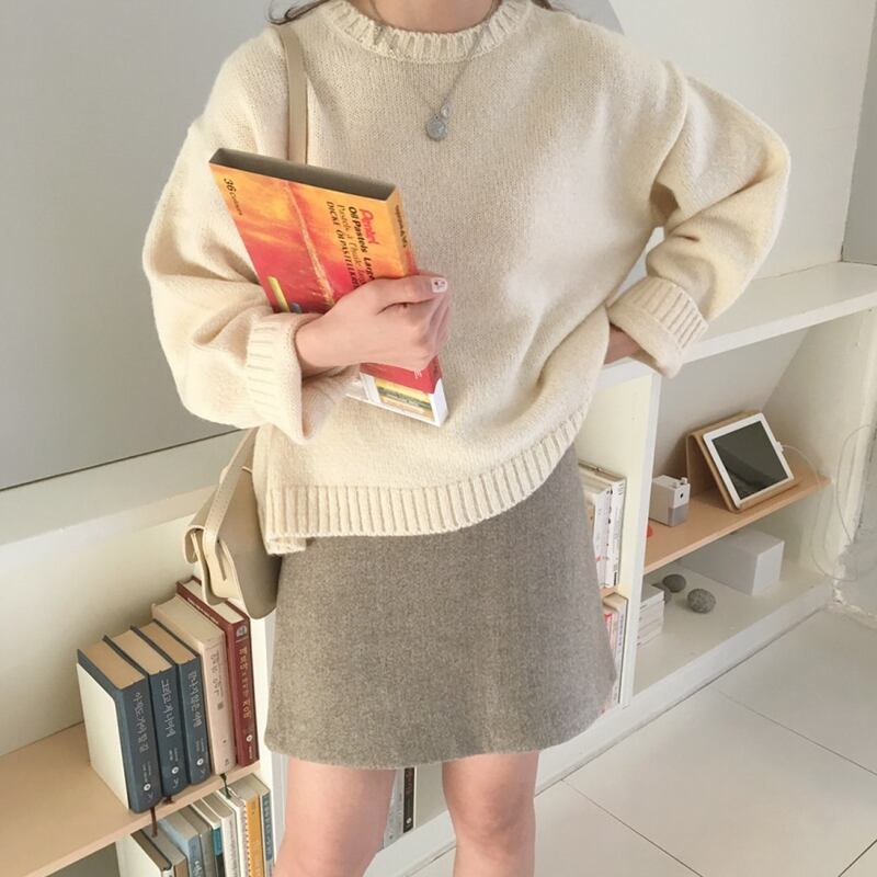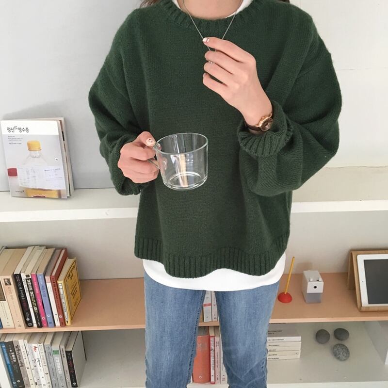 シックな無地のラウンドネックセーターの女性の2020年初秋新入生のルーズで薄いカジュアルな長袖セーターのバージョン クレセントシティ12812087450