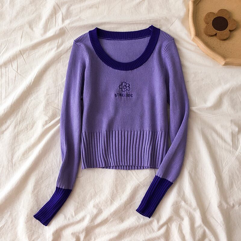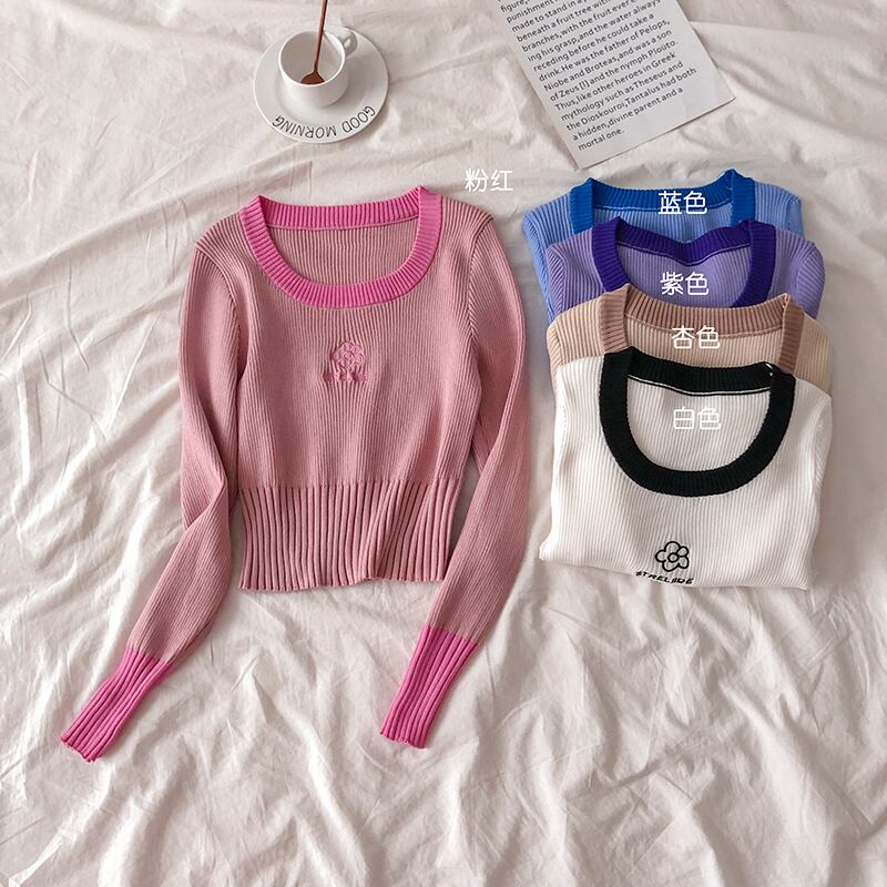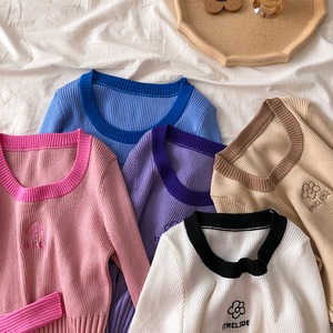 クレセントシティ2020年秋新しいスリム長袖ニット薄底シャツレディーススリムで用途の広いショートトップ クレセントシティ30533586232