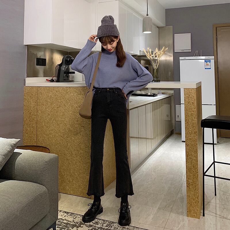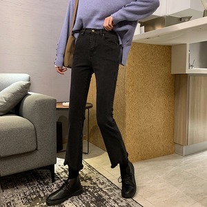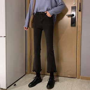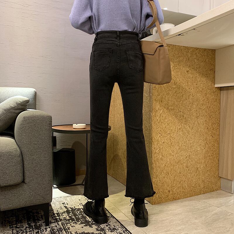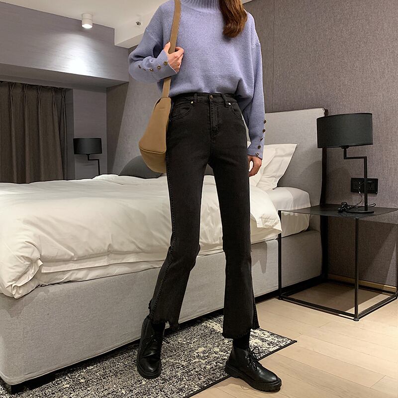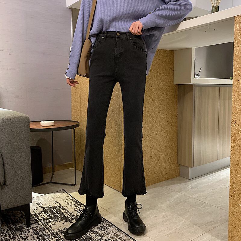 ブラックグレージーンズレディース2020新バージョン秋冬不規則擦り切れマイクロスリムスリムストレートパンツ クレセントシティ46626055179