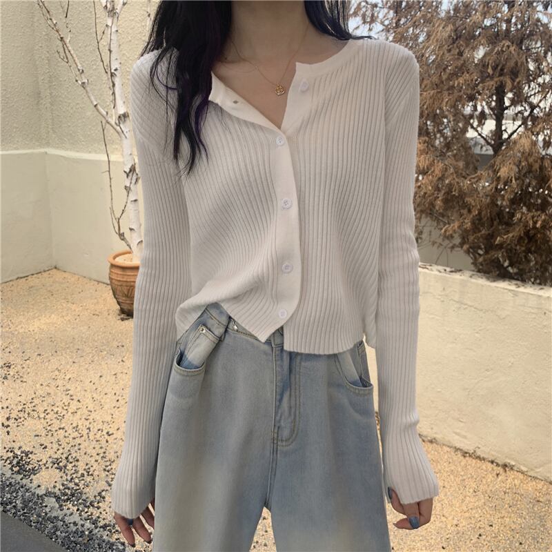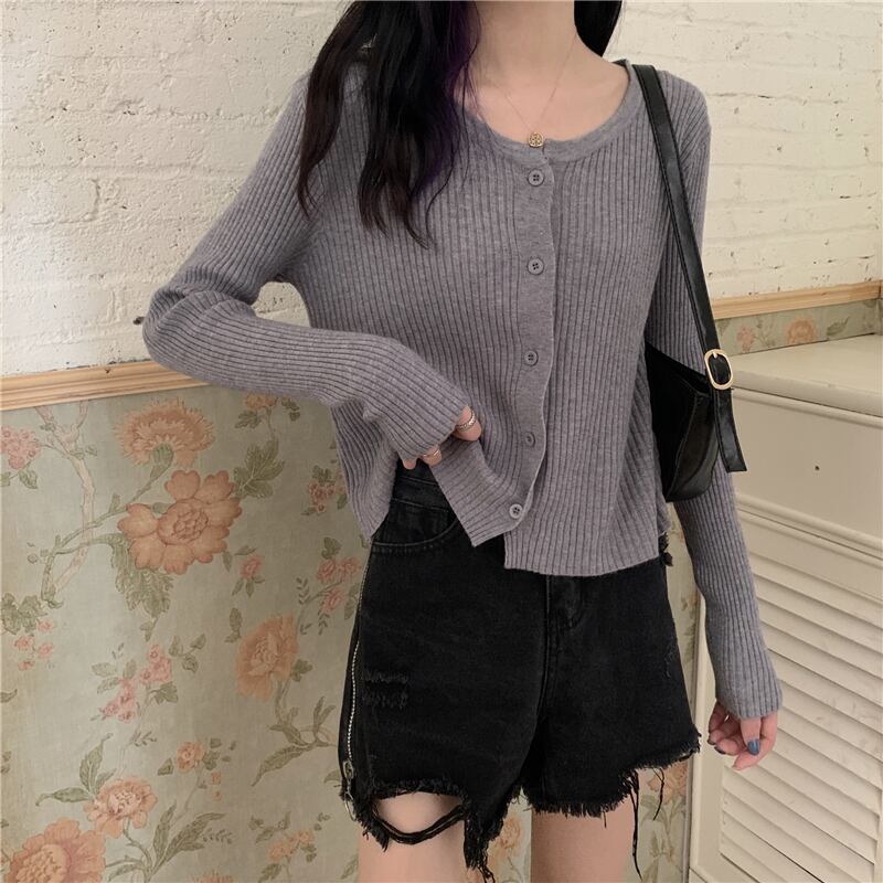 ピュアカラーピットストライプセーター薄身女性2020年初秋新バージョンルーズ&シンショートカーディガンジャケットトレンド クレセントシティ51914923753