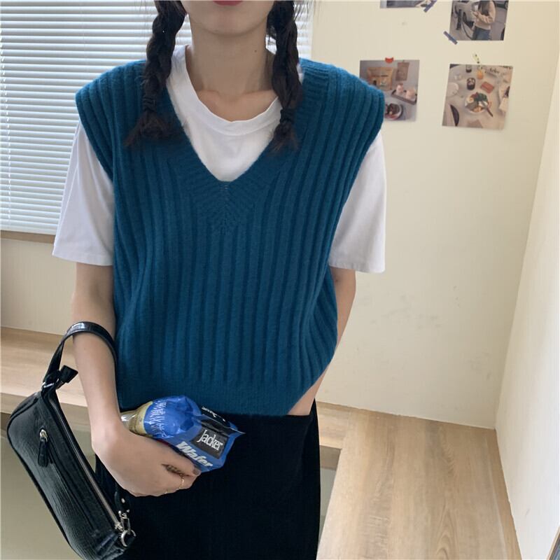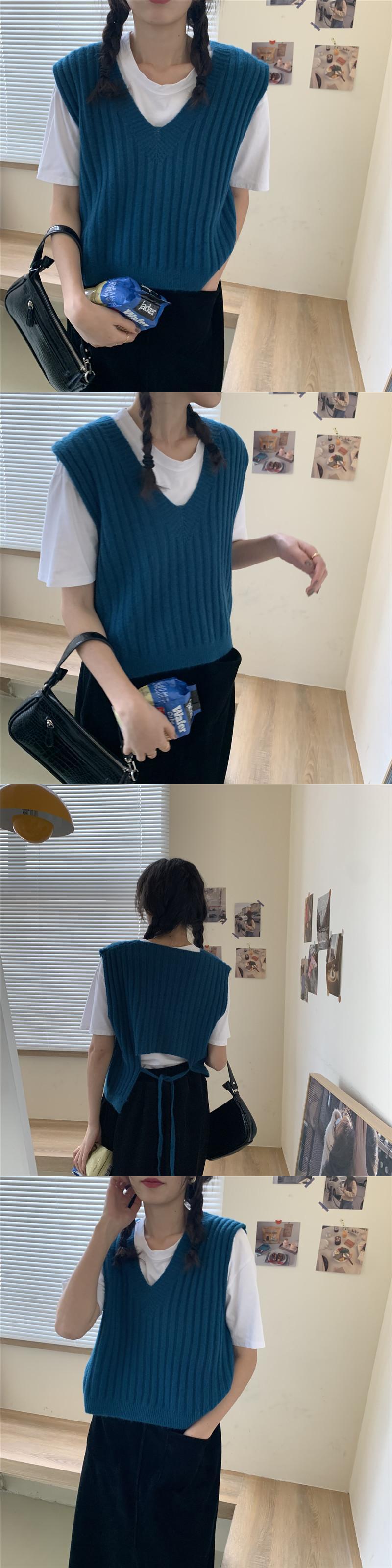 バックストラップニットベスト女性2020年初秋新デザインセンスニッチ学生カジュアルVネックベストのバージョン クレセントシティ53732337425
