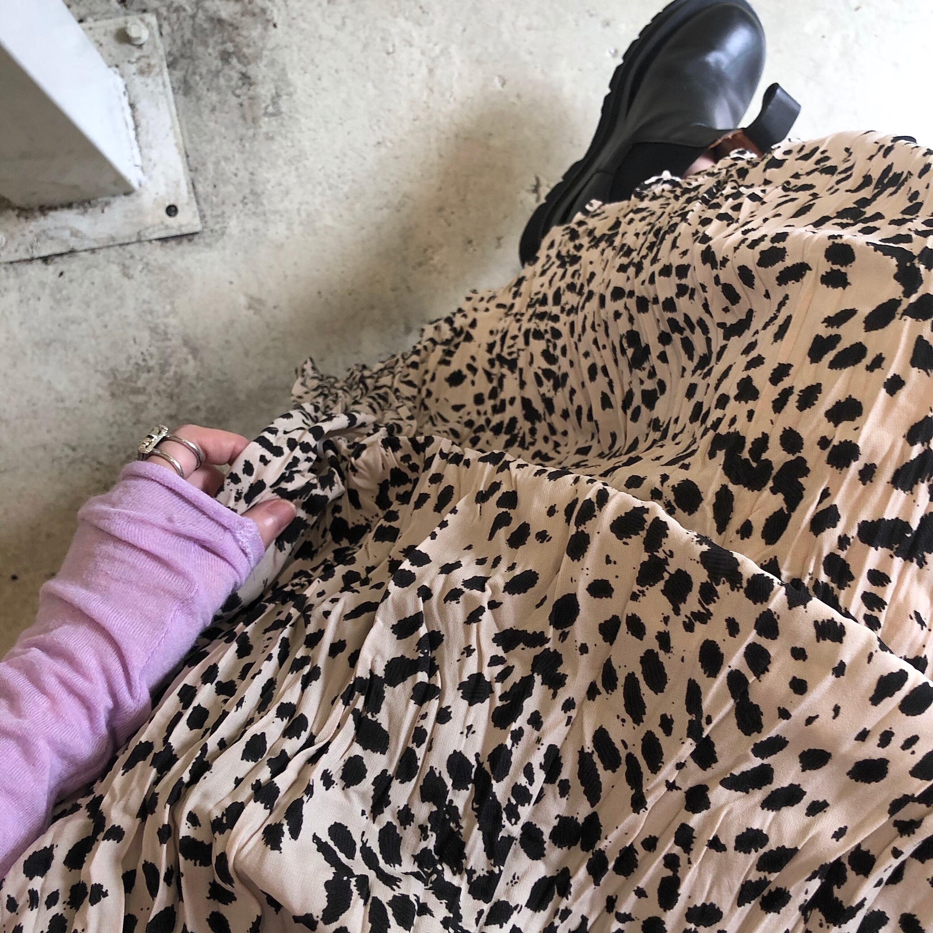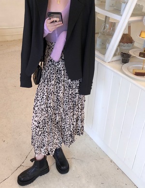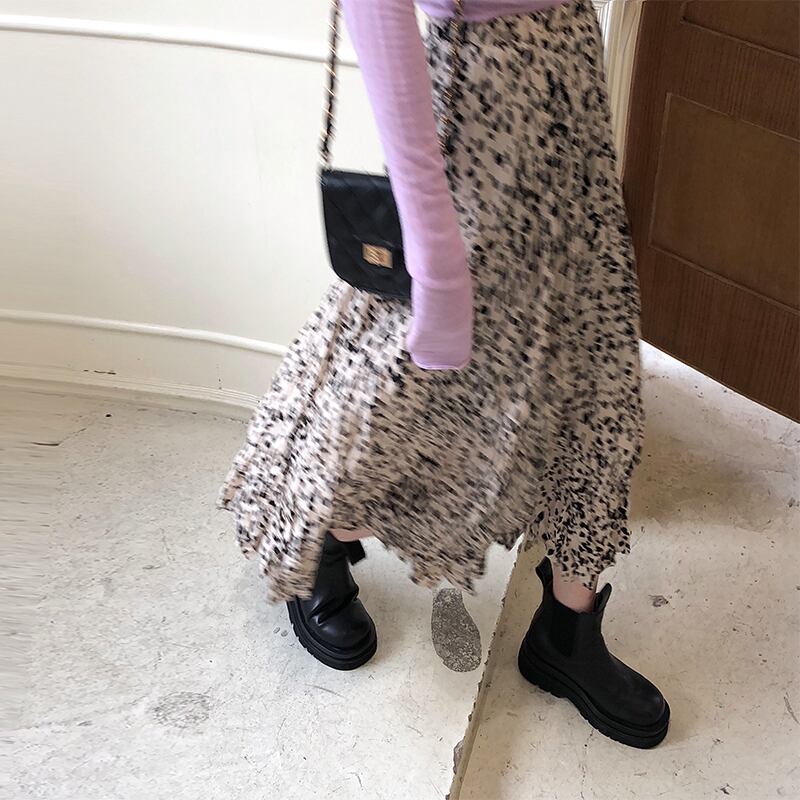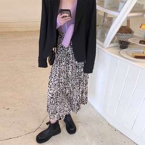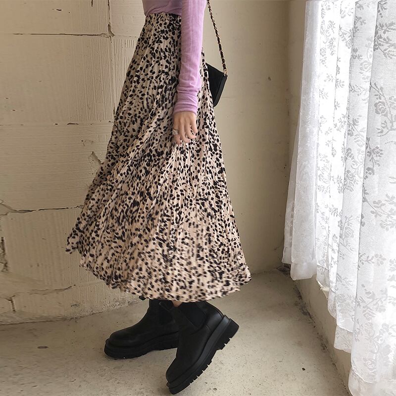 ミッドレングスのヒョウ柄のスカート女性の2020年初秋新しいハイウエストルーズスモール伸縮性ウエストプリーツスカート クレセントシティ50867756012