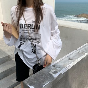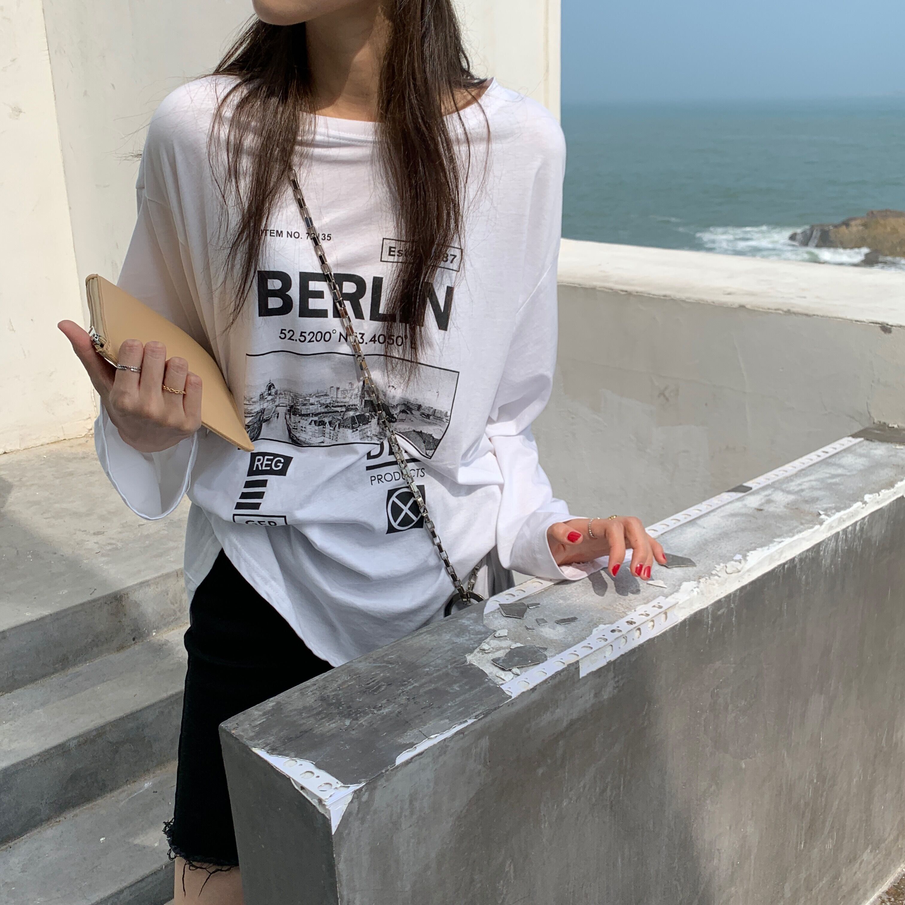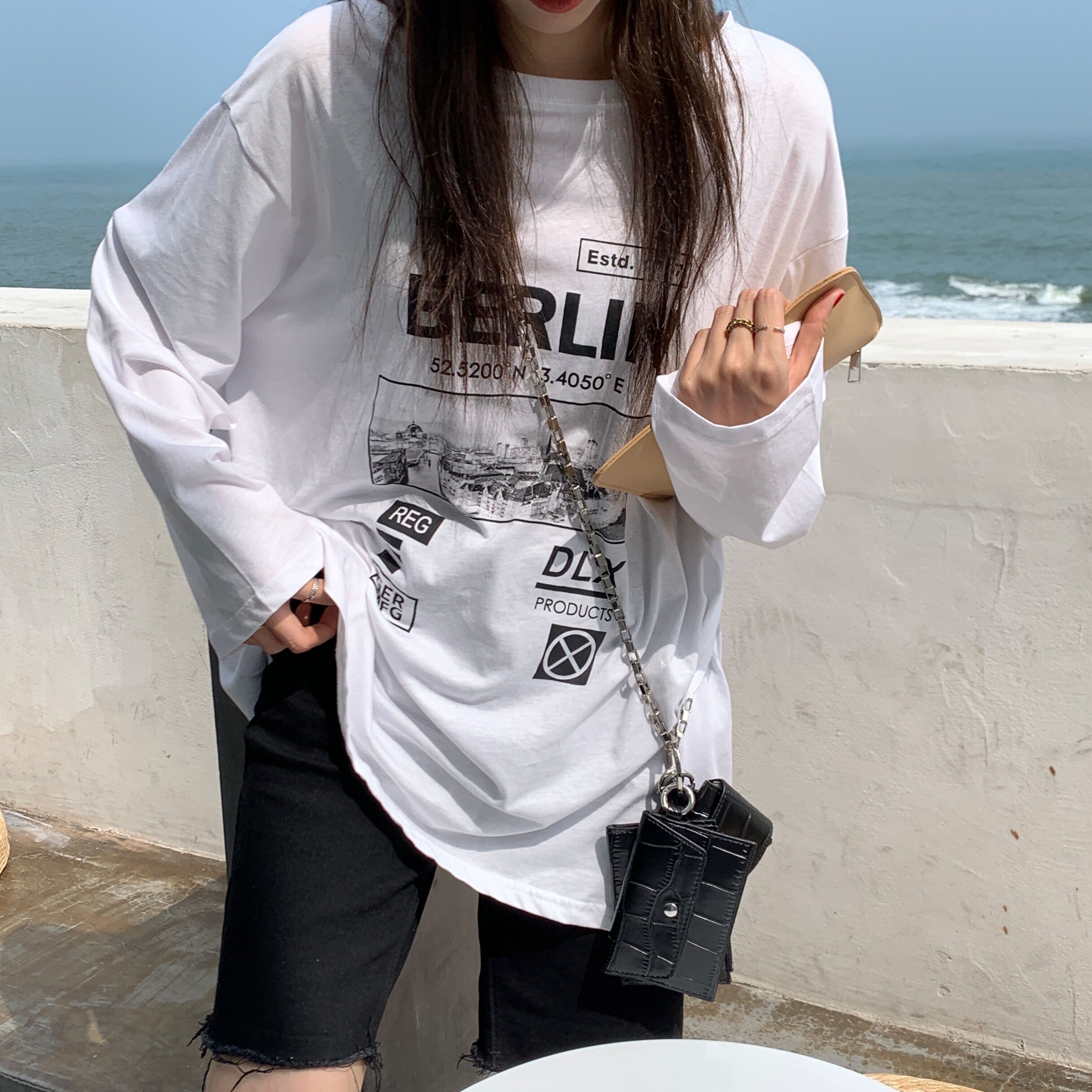 ラウンドネックレタープリント長袖Tシャツレディース2020年初秋新入生ルーズミドル丈カジュアルトップス クレセントシティ26059276033