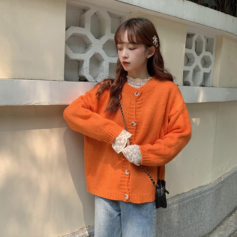 クレセントシティの秋の服の新しいバージョン緩い怠惰な風は塩になることができます甘いニットカーディガンジャケット女性のセーターコートのトレンド クレセントシティ65703400150