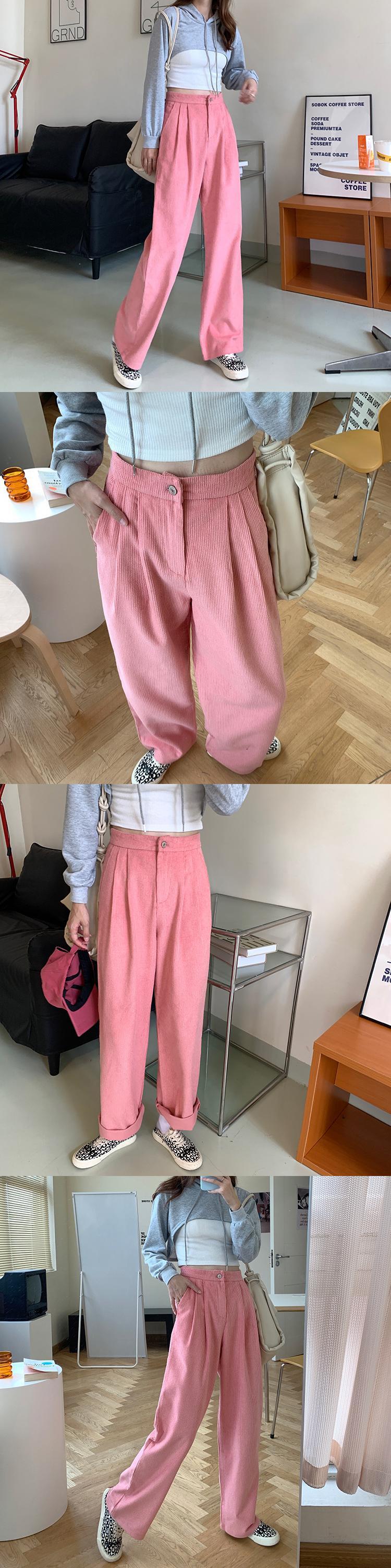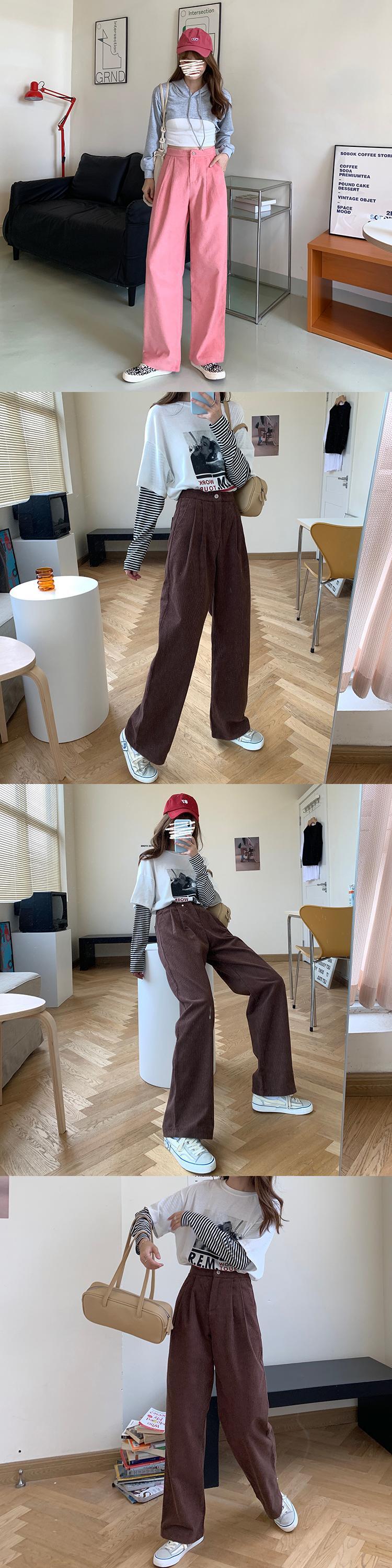 コーデュロイカジュアルパンツレディース2020年秋新バージョンルーズストレートワイドレッグパンツハイウエストシンオールマッチパンツ クレセントシティ2783039935