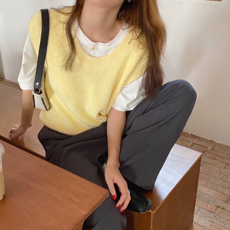 ニットベストベスト女性2020年秋新しいシックなワイルドルーズノースリーブチョッキスタッキングトップタイド クレセントシティ99865892916
