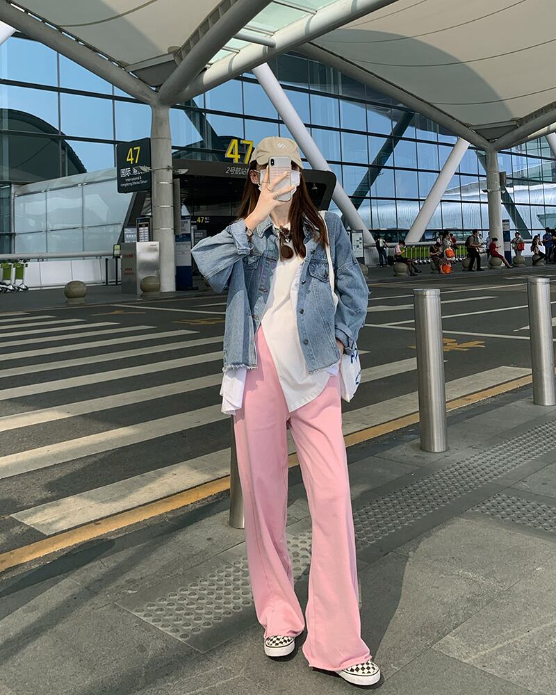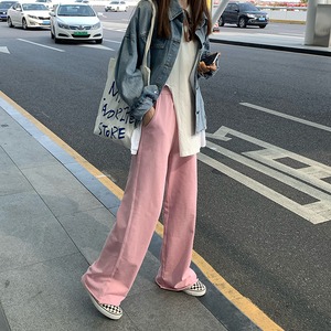 グレーのワイドレッグパンツレディース2020年初秋新バージョンのルーズで薄いカジュアルパンツ伸縮性のあるハイウエストカールモップパンツ クレセントシティ56680006275