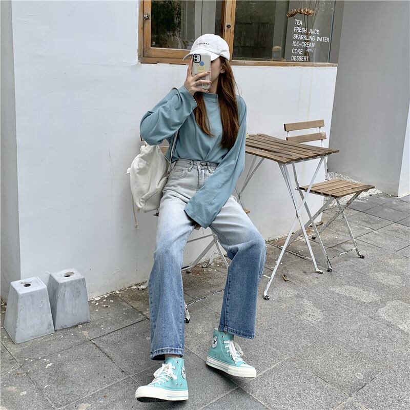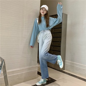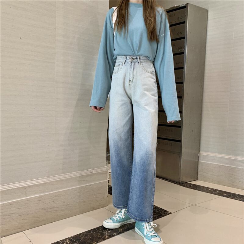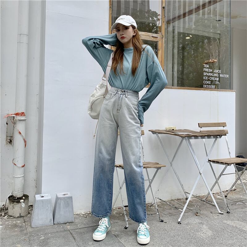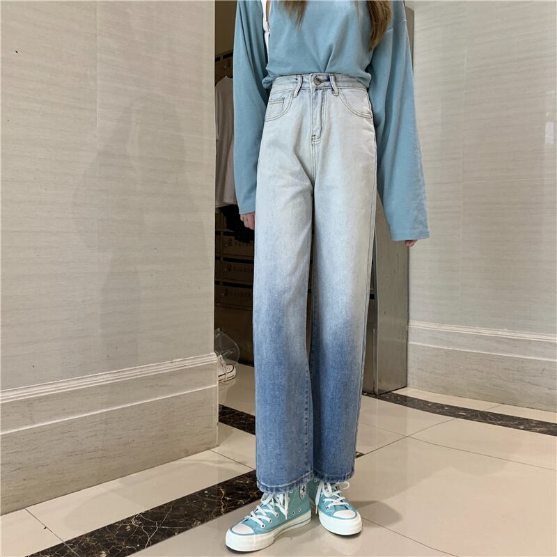 秋のハイウエストジーンズ女性2020のバージョン新しい小さく、ルーズ、薄い、ワイドレッググラデーション絞り染めストレートレッグパンツ クレセントシティ87878932016