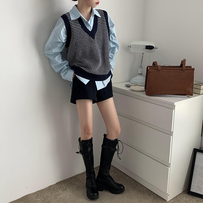 クレセントシティ2020秋新バージョンの赤外線ウェアフード付きチョッキVネックノースリーブニットチョッキベスト女性 クレセントシティ91584408141