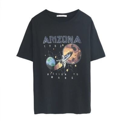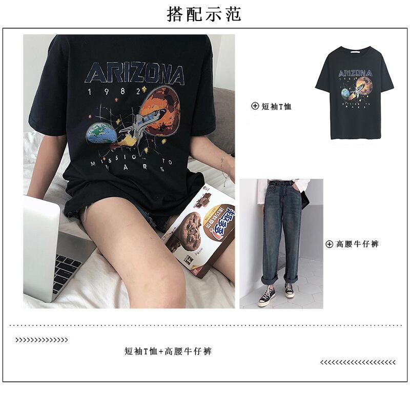 夏のレトロなパターンの文字印刷ルーズ半袖Tシャツ女子学生ワイルドルーズオルチャンコンピオネート クレセントシティ27274520634