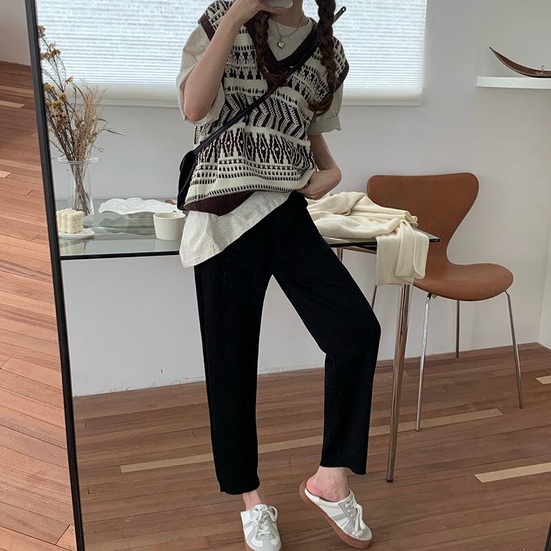 ハイウエストドレープニットレディースカジュアルパンツ2020年秋新作ルーズスモールストレート9点スーツパンツ クレセントシティ74773981629