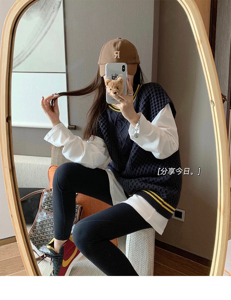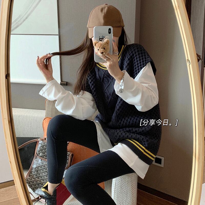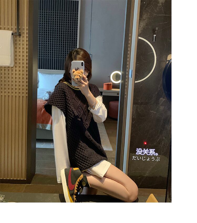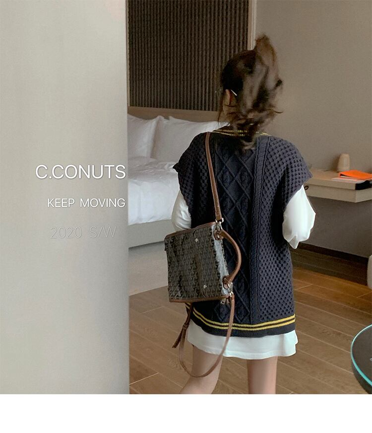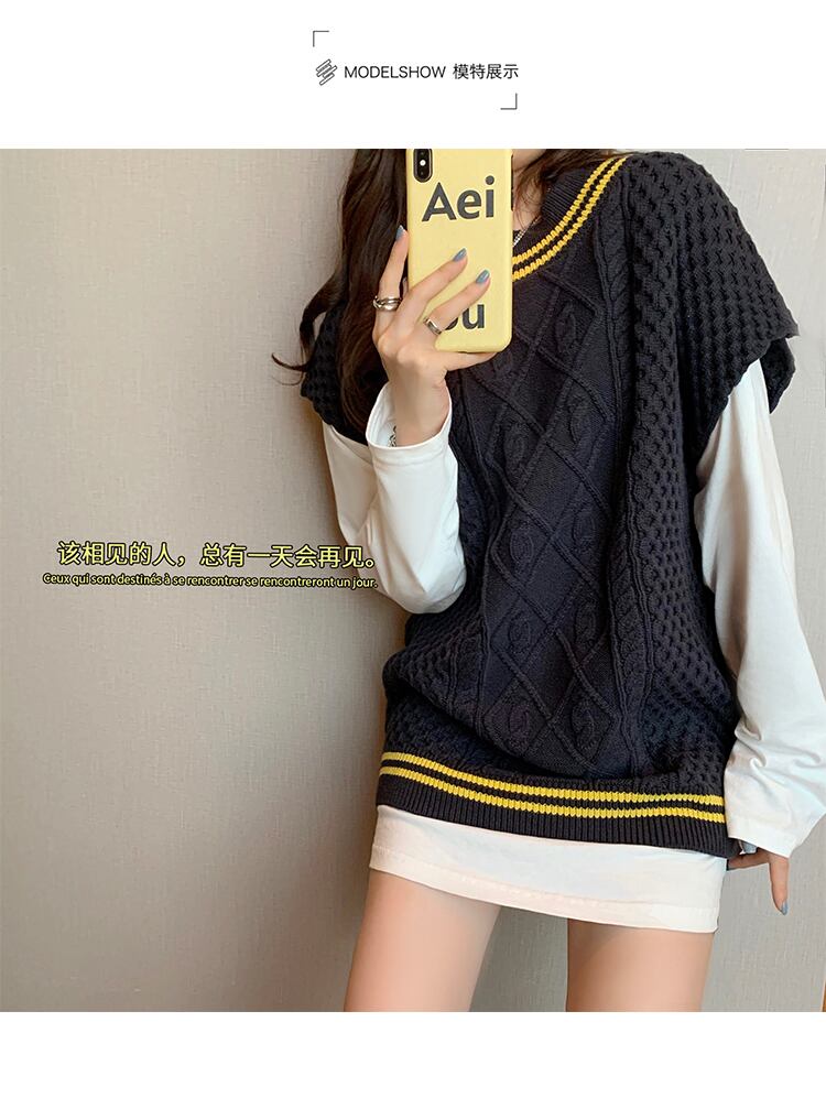 ニットベストトップレディース秋の服2020新バージョンルーズワイルドカレッジスタイルセーターベストアウターウェア学生 クレセントシティ99539647665
