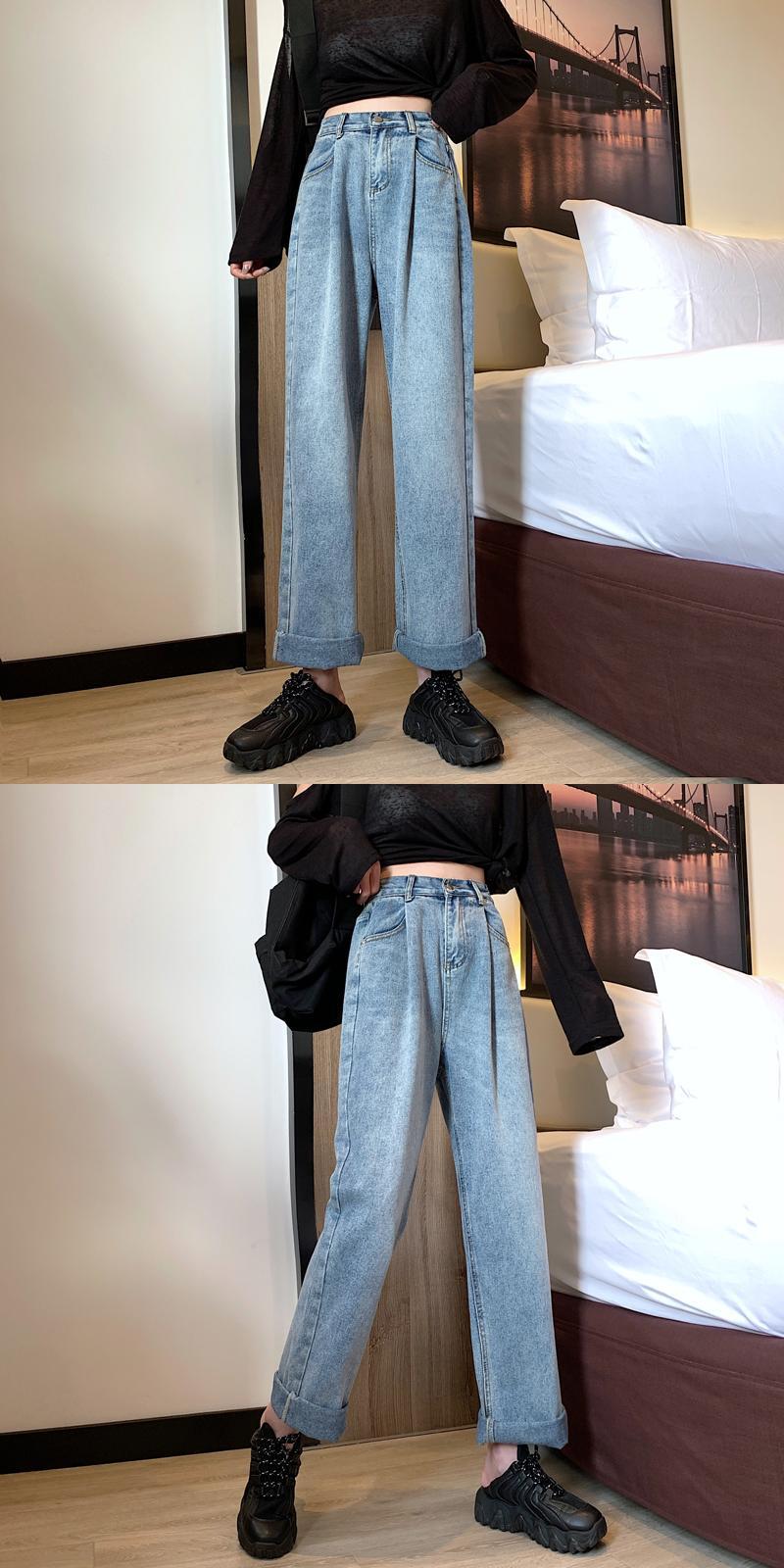 ウエストジーンズレディース2020秋冬の伸縮性ウエスト学生ストレートルーズで薄いドレープワイドレッグパンツの新バージョン クレセントシティ72851926410