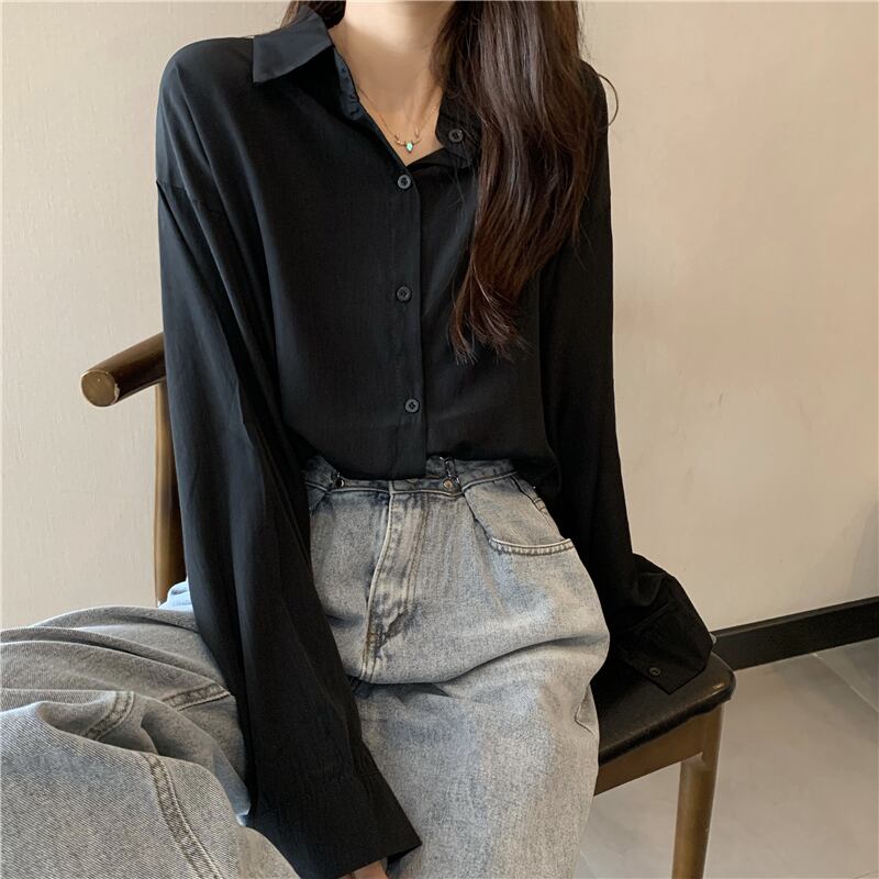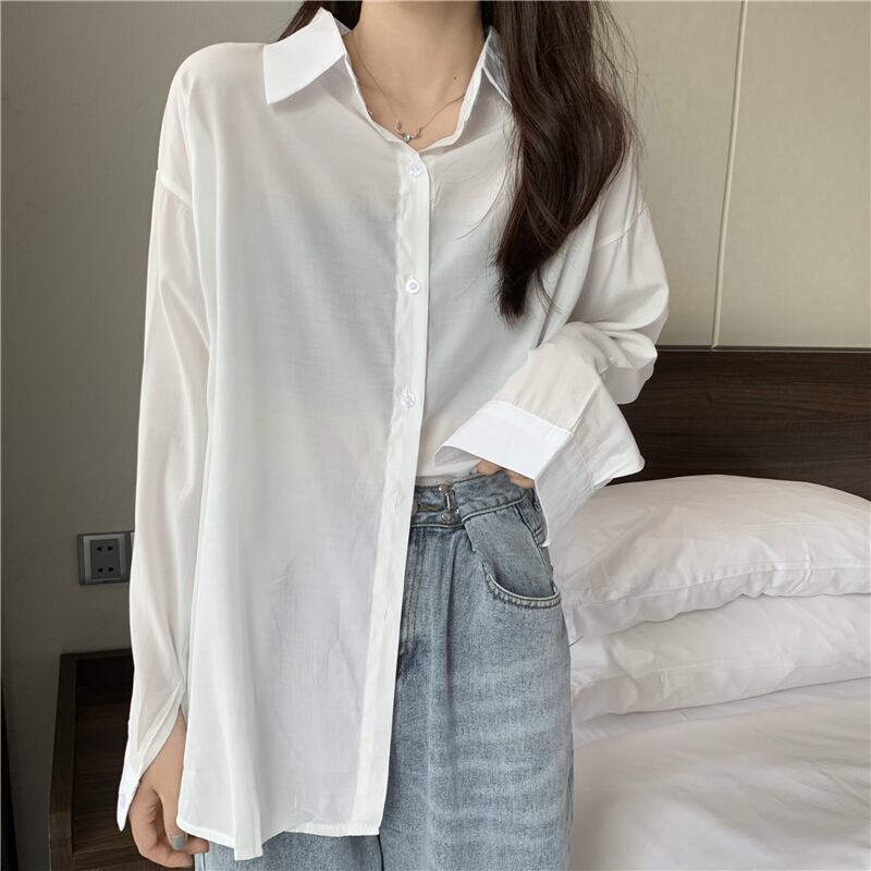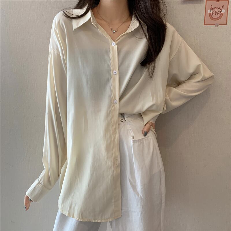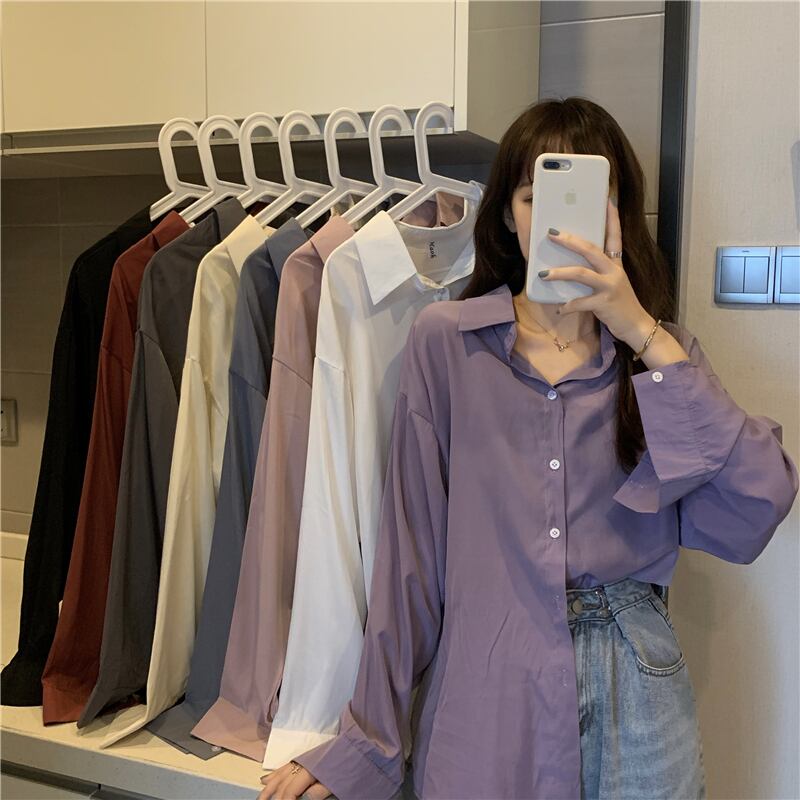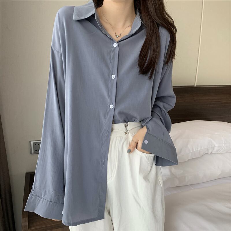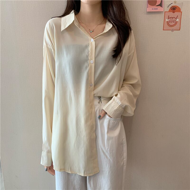 無地長袖シャツ女性デザインセンスニッチ2020年秋新バージョンルーズミドル丈カジュアル薄手シャツ クレセントシティ59782808329
