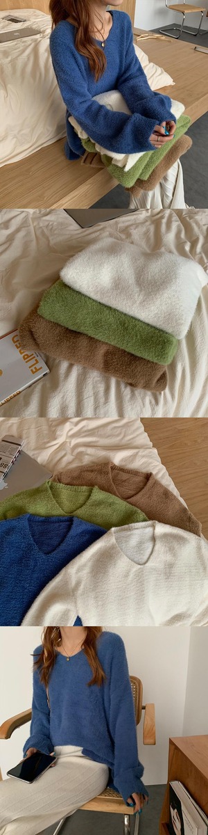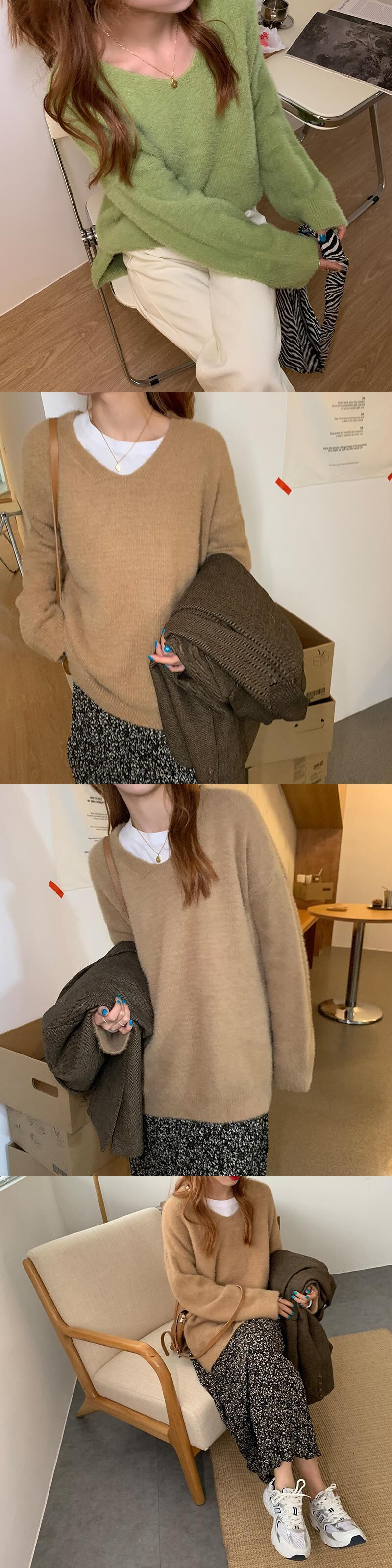 クレセントシティモヘアセーターウィメンズ2020年秋冬スタイルルーズウエスタンスタイルVネックニットトップス クレセントシティ80907893751