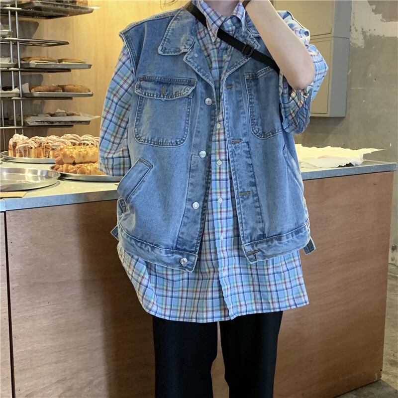 デニムベストベストジャケットレディース2020年秋新バージョンレトロワイルドネットレッドノースリーブチョッキトップトレンド クレセントシティ48077876360