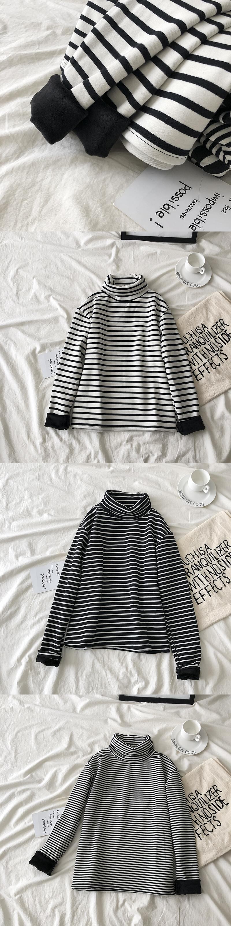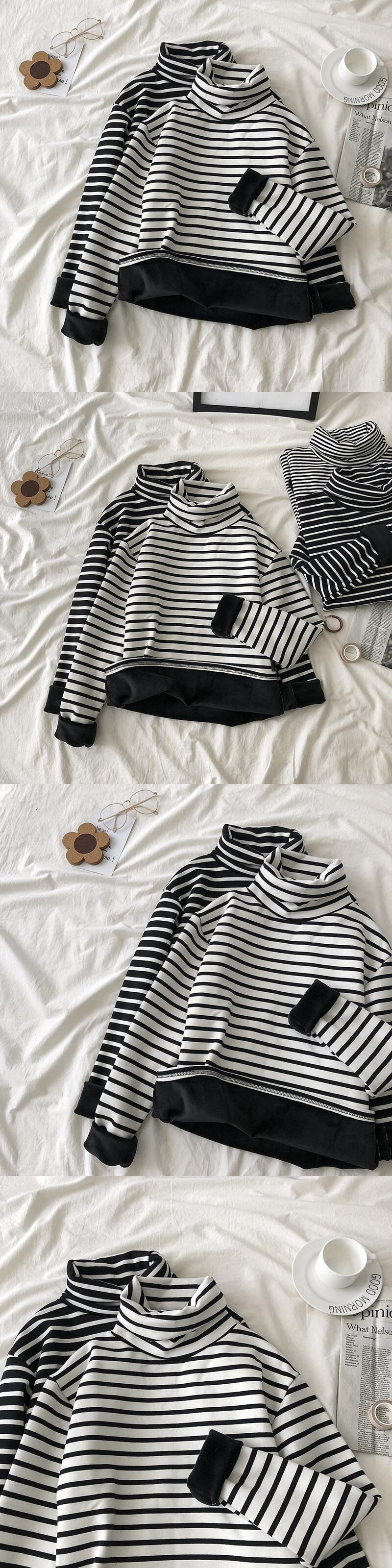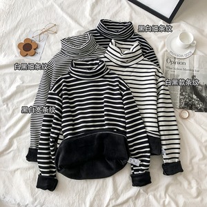 クレセントシティのストライプの長袖Tシャツ女性の秋と冬のオールマッチハイネックボトミングシャツとベルベットの厚みのあるインナートップイン クレセントシティ72075648770