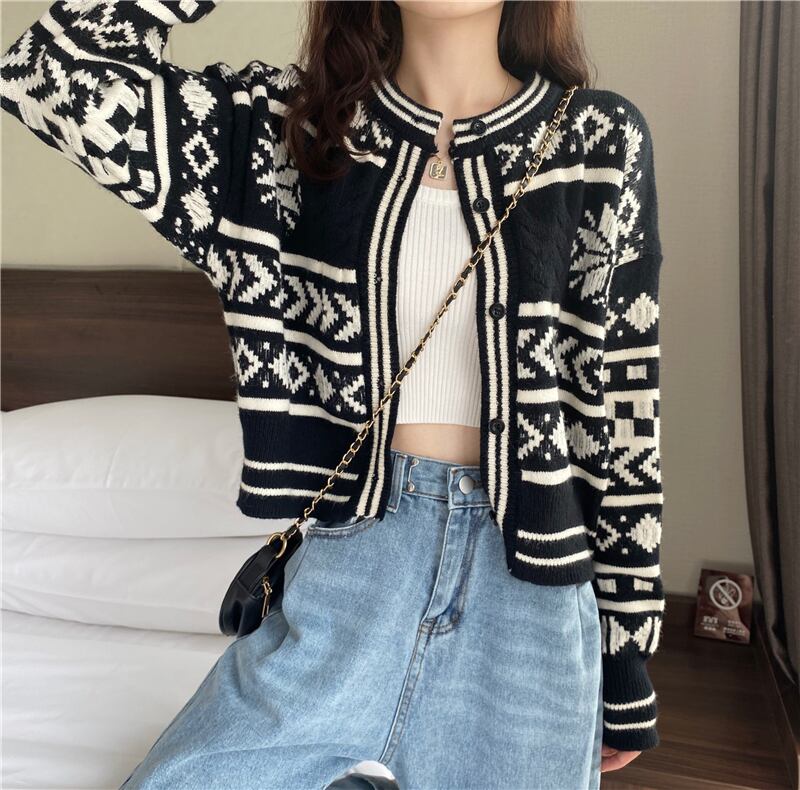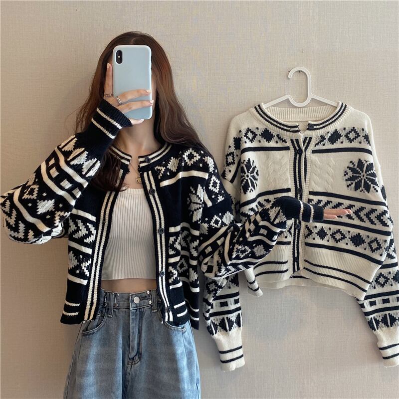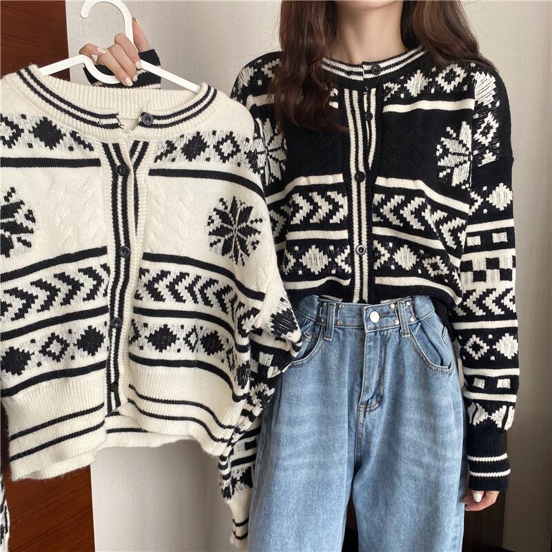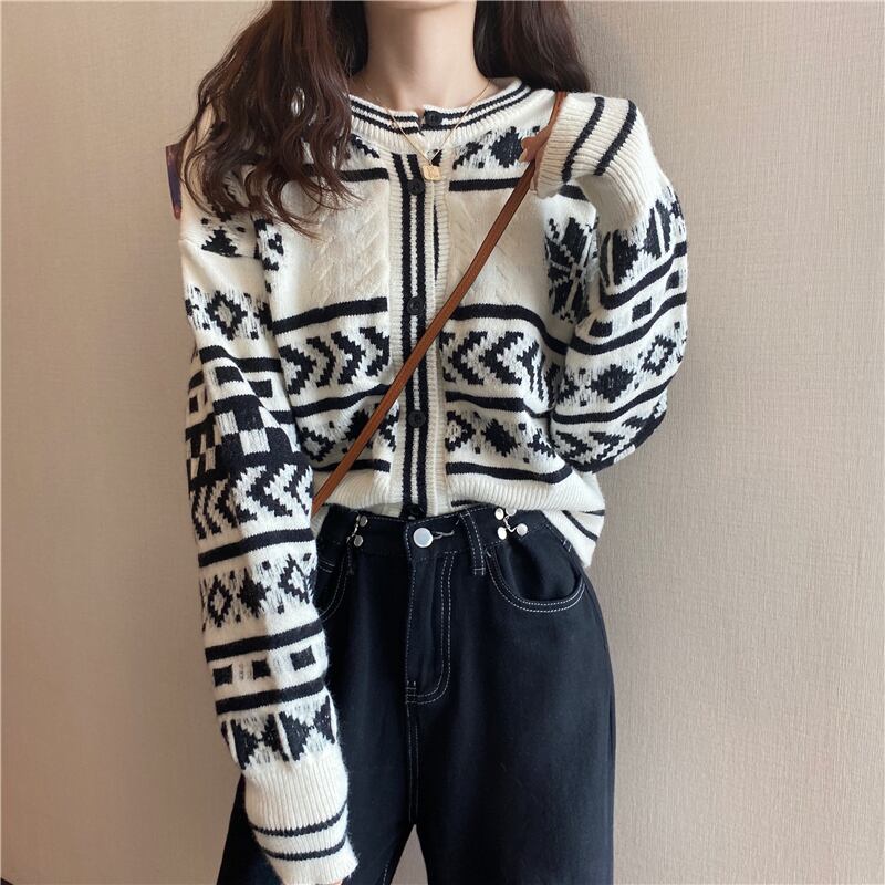 2020年秋冬の新しいレトロな怠惰なセータージャケット女性のワイルドルーズ学生ニットカーディガントップ クレセントシティ31953780957